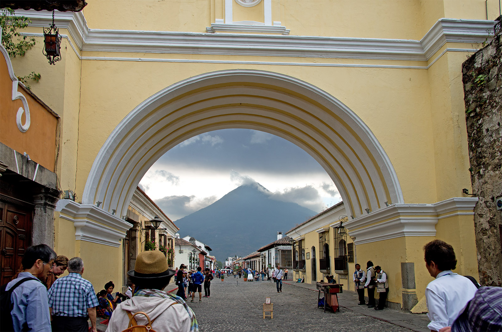 アルコ通りの時計台とアグア火山