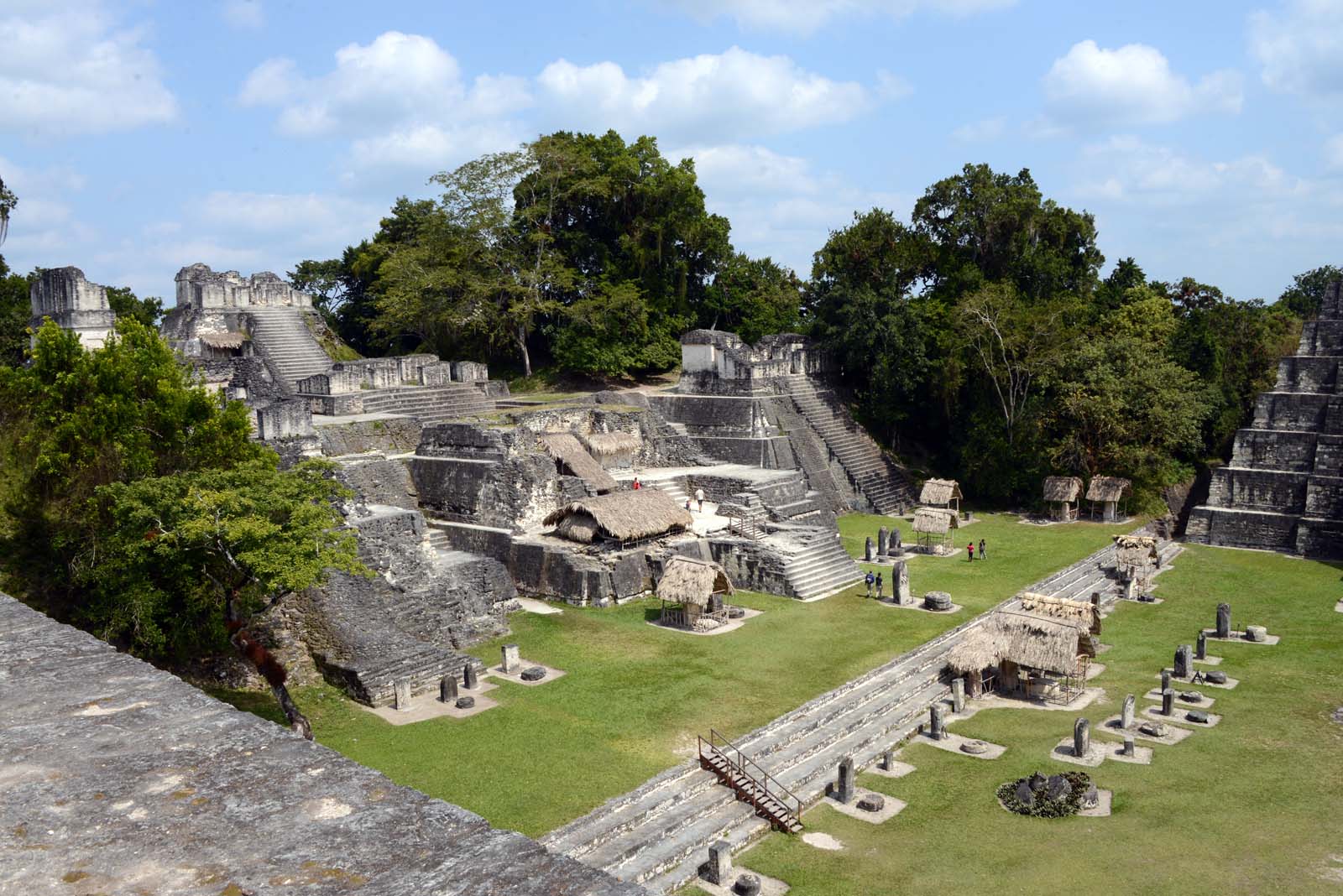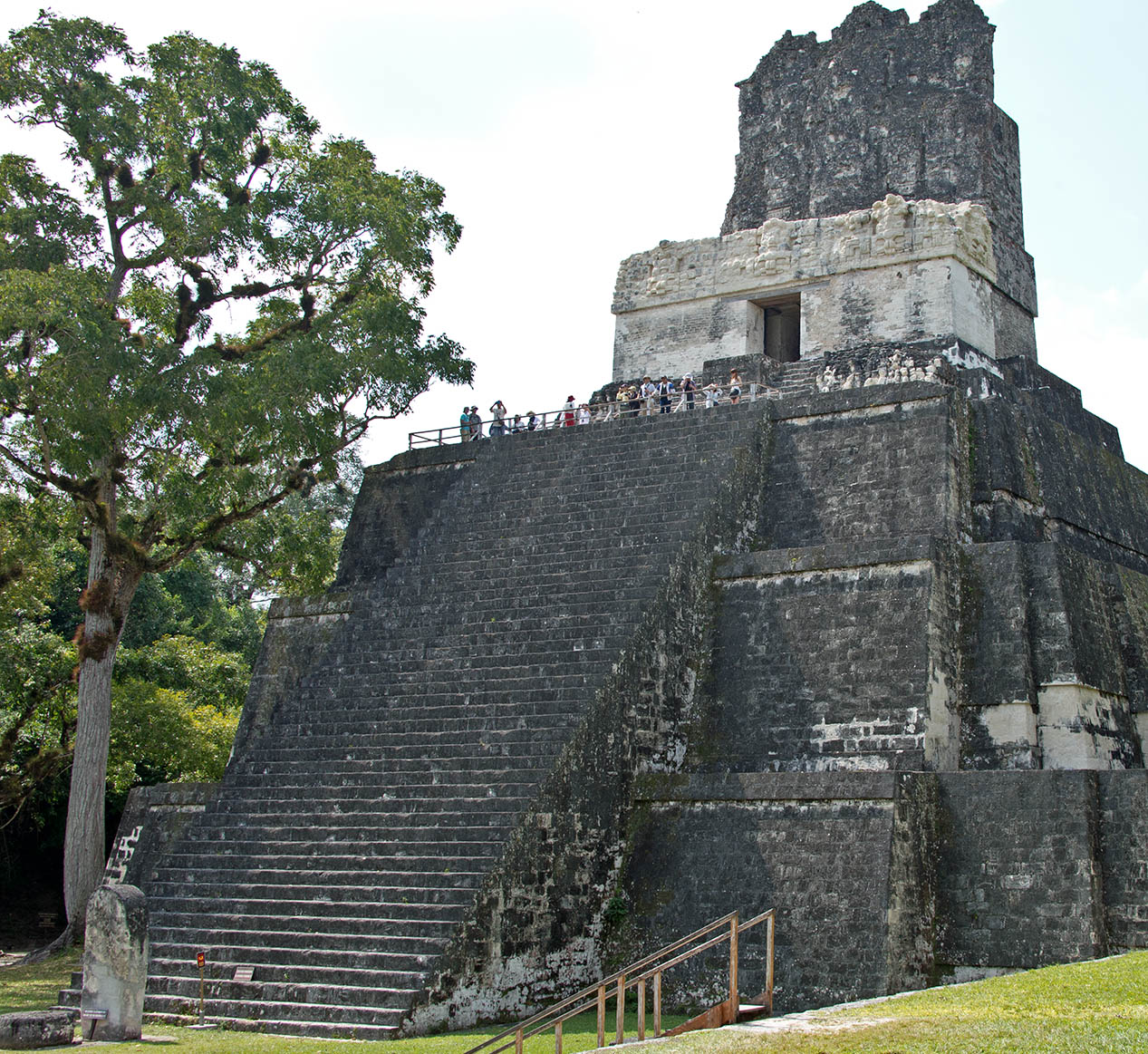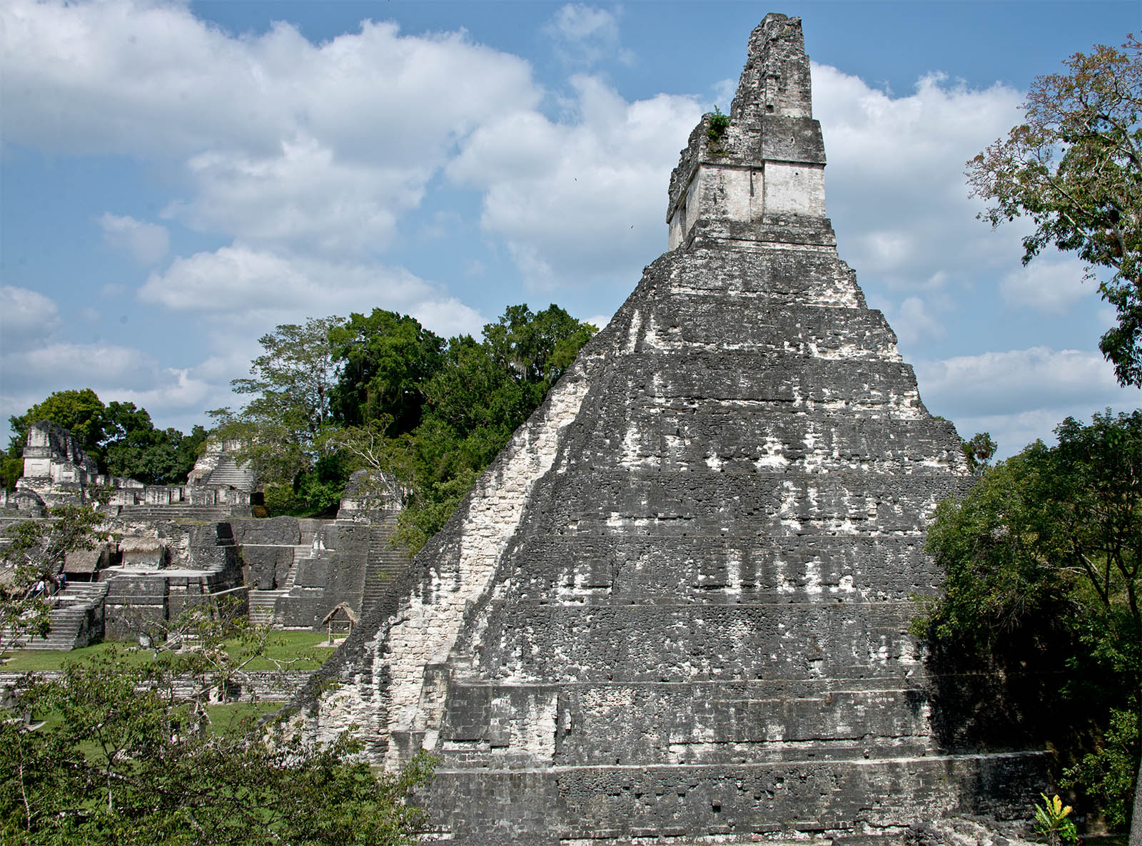 ◇ グアテマラ北部のペテン地方の深い森林にあるティカル遺跡は勾配の急な階段を持つ神殿群が多数建てられ, 8世紀の全盛期には人口6万人程度が暮らしたとされる古典期マヤ文明を代表する都市である。
