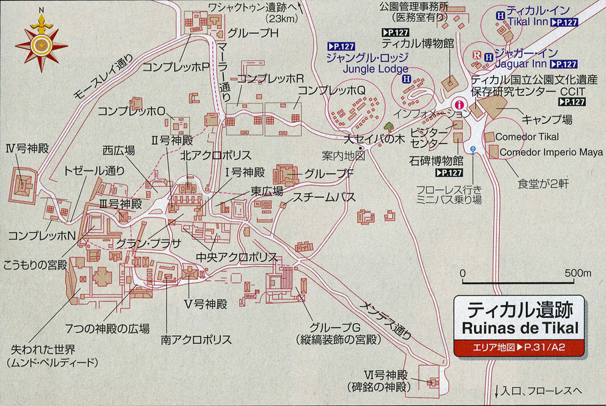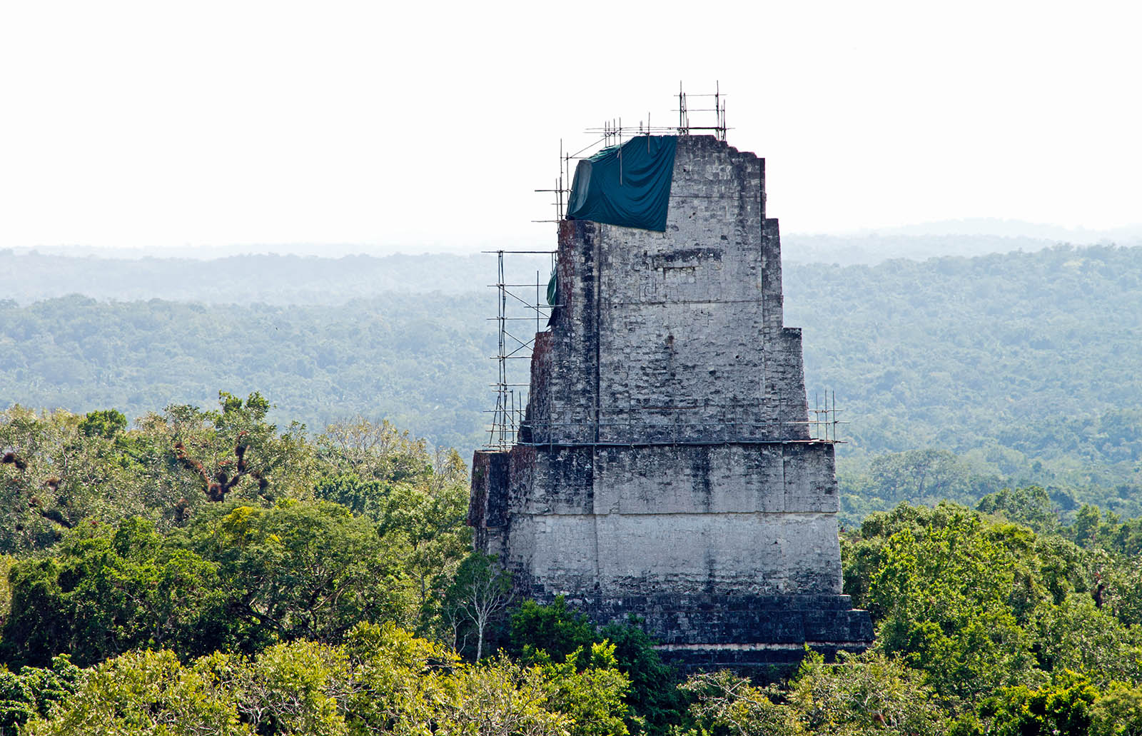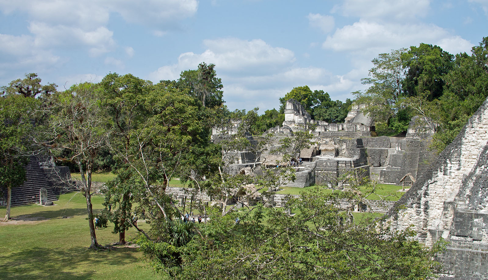 ◇ グアテマラ北部のペテン地方の深い森林にあるティカル遺跡は勾配の急な階段を持つ神殿群が多数建てられ, 8世紀の全盛期には人口6万人程度が暮らしたとされる古典期マヤ文明を代表する都市である。