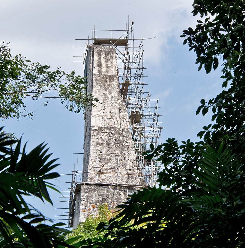 高さは58m近くあり、第IVの神殿に次ぐ高さを持つ8世紀前半の建造物です。13年前にきれいに修復されたが、北向きの勢かすでにコケなどで黒くなり貫禄のある姿になっている。