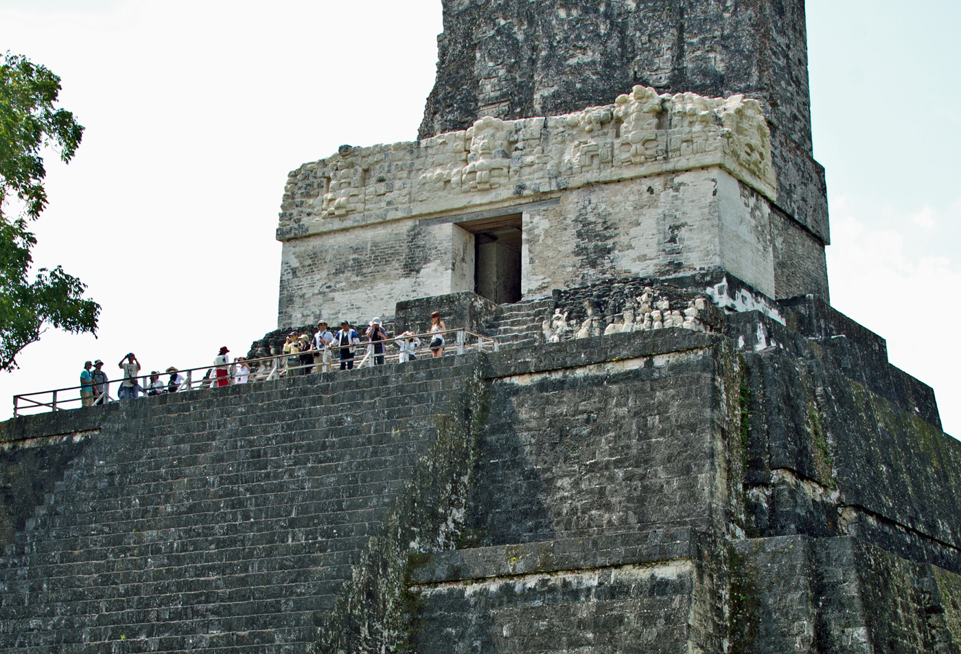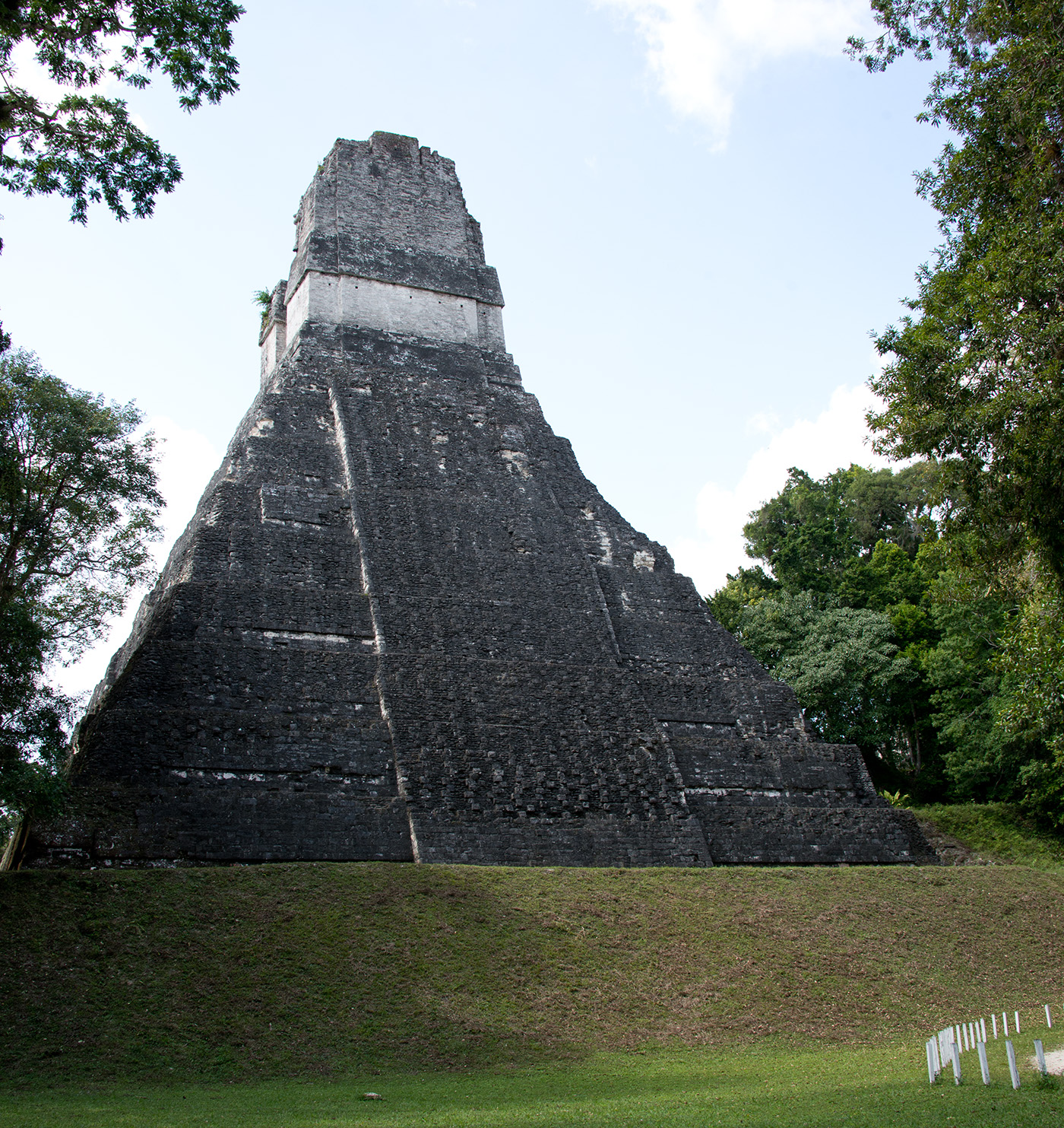 695年にカラクムルを打ち負かした ハサウ・チャン・カウィール王 (682-734AD) により 700AD 頃に造られた高さ52mのピラミッド。九層の急勾配の基壇上に神殿が築かれ、高く大きな屋根飾りで 上部が装飾されたティカルの代表的な建造物。屋根飾りの装飾は風化が激しいが、当時はクリーム色、赤、緑、青に塗られ、ピラミッド全体は赤く仕上られていたようです。