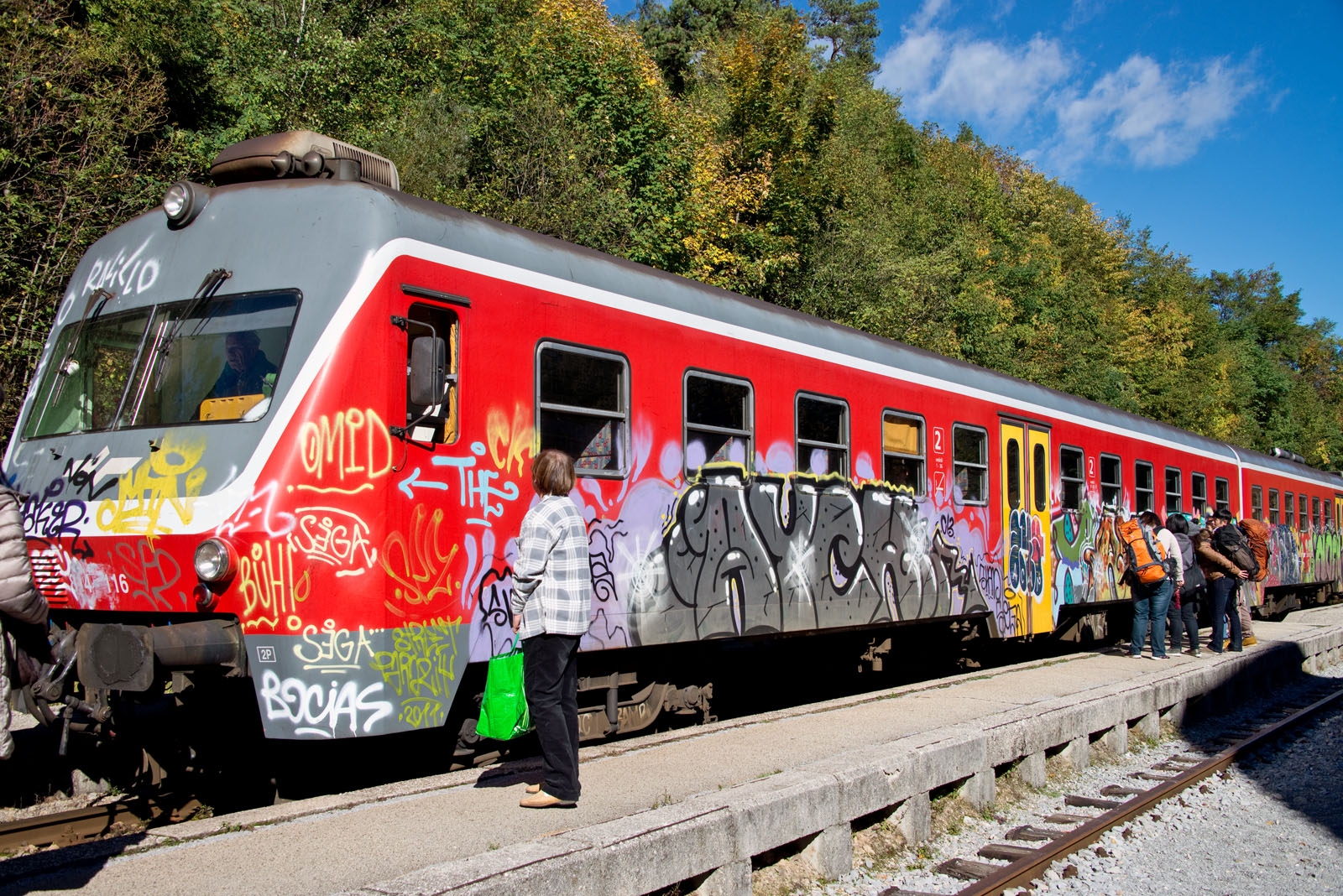 ボーヒン鉄道に乗る(車体にはスプレイアート)
