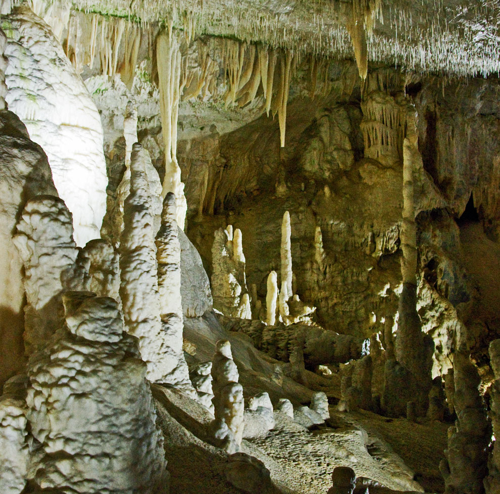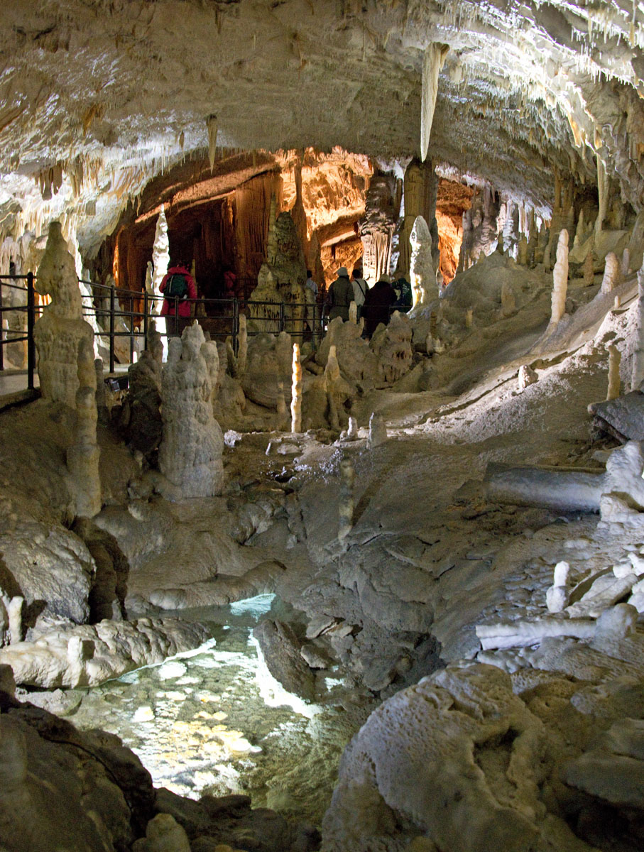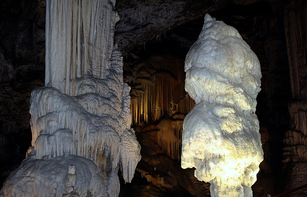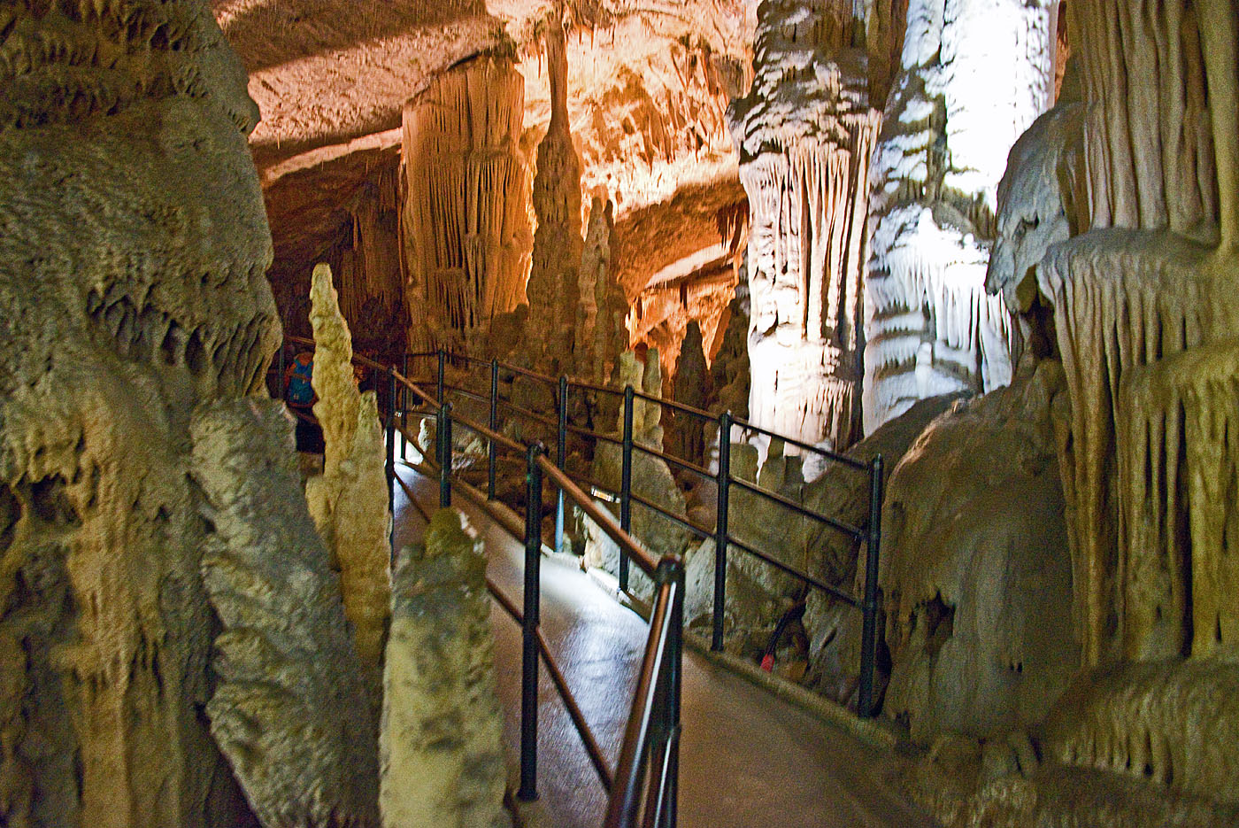 トロッコから下車し、2km程度徒歩で観覧する。「高層建築」と呼ばれるところから、大きい山(ヴェリカ・ゴラ)という洞窟の山に登り、ノアの箱舟などの石筍を見る。数々の鍾乳石を見ながら山を下り、ロシア橋を渡る。この橋は、第一次世界大戦の間、ロシア捕虜によって建設されたものである。そして鍾乳洞は最も美しい洞窟(レペ・ヤメ)に続く。ここではスパゲティホール、白のホール、赤いホールを巡る。「スパゲティ」と呼ばれる美しい細く繊細な中空状の氷柱のような形状の鍾乳管がある。最も美しい「ブリリアント」を見て、高さ40m、広さ3000平方mの大きなコンサート・ホールと呼ばれる空間に至る。実際にコンサートが開催され1万人を収容でき、ショップもある。ここから帰路の電車に乗る。