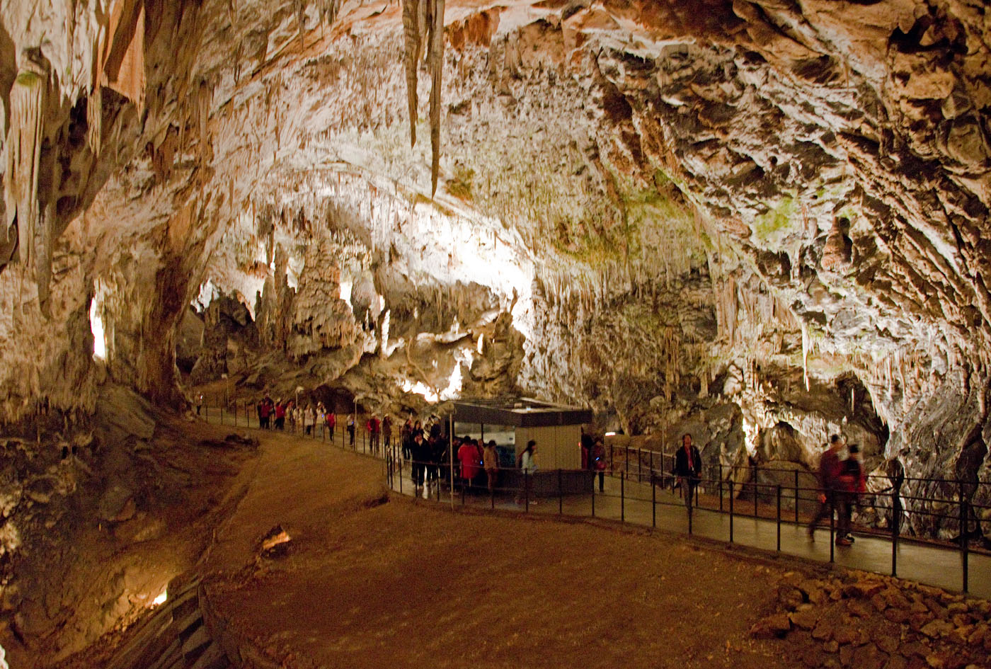 ポストイナ鐘乳洞は島洞窟、黒洞窟、ピウカ洞窟、マグダレナ洞窟等と合わせた総延長は20km以上で、スロベニアで最長である。現在の観光コースは約5kmあり、そのうち3.7kmをトロッコ電車から鍾乳洞を観覧する。トロッコはスターラ・ヤメの狭いトンネルを速い速度で奥に進む。茶色から白色に至る鍾乳石や石筍が並ぶ。鍾乳石は天井から地面に向かって成長するのに対して、石筍は地面から上方に成長する。この2つがつがなると石柱になる。鍾乳石が1mm成長するのには、10年から30年がかかるといわれる。最も白い鍾乳石は「ブリリアント」と呼ばれ、ポストイナ鍾乳洞のシンボルになっている。