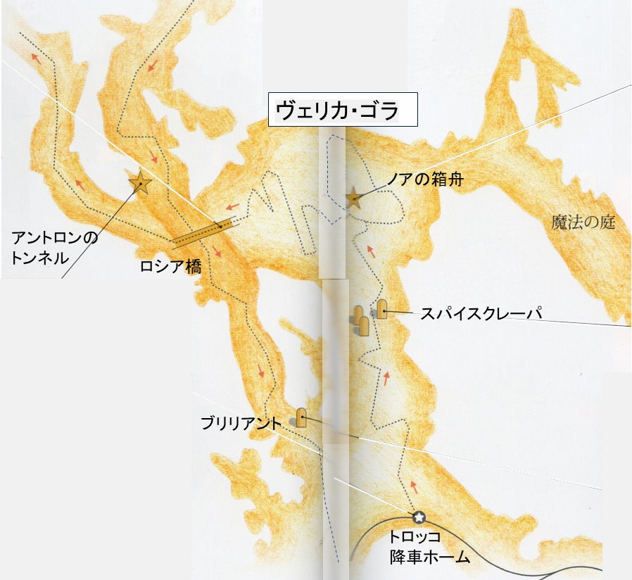 トロッコを降りて大きな洞窟の中の大きな山(ヴェリカ・ゴラ)に登る。