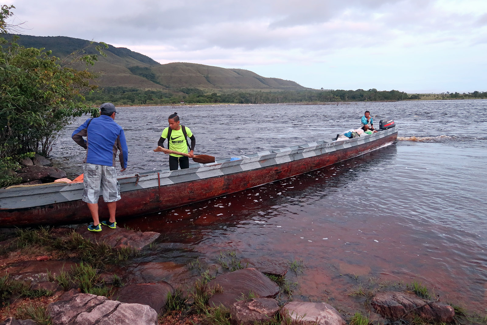 カナイマからボートで、アウンヤンテプイを見ながら、カラオ川、チュルン川を遡り、エンジェルフォールの入口であるラトンシート島まで行く、距離:70km、所要:4時間。