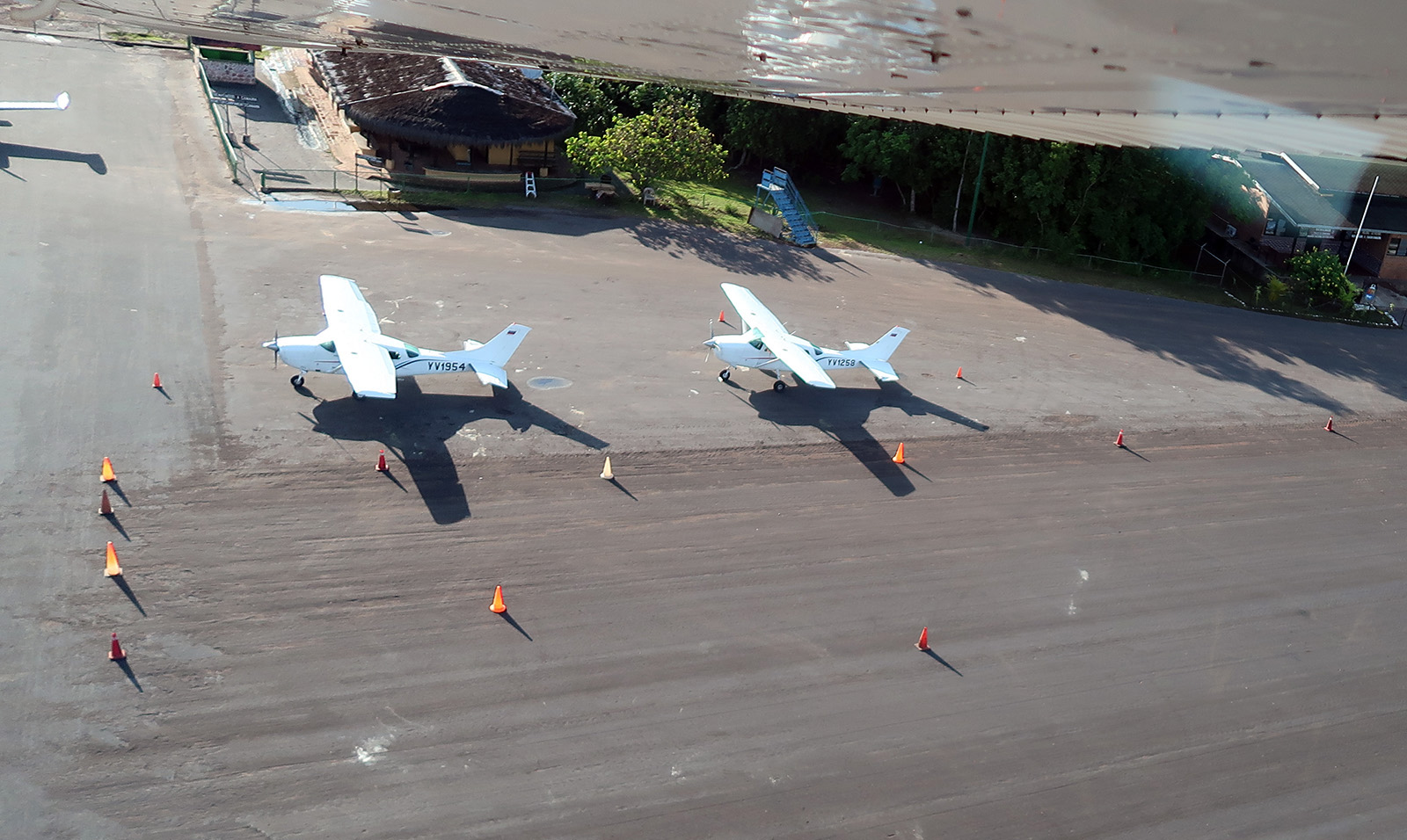 カナイマ空港を飛びたち、エンジェルフォールを空から見ながら、グランサバンナのルエバ飛行場を目指す