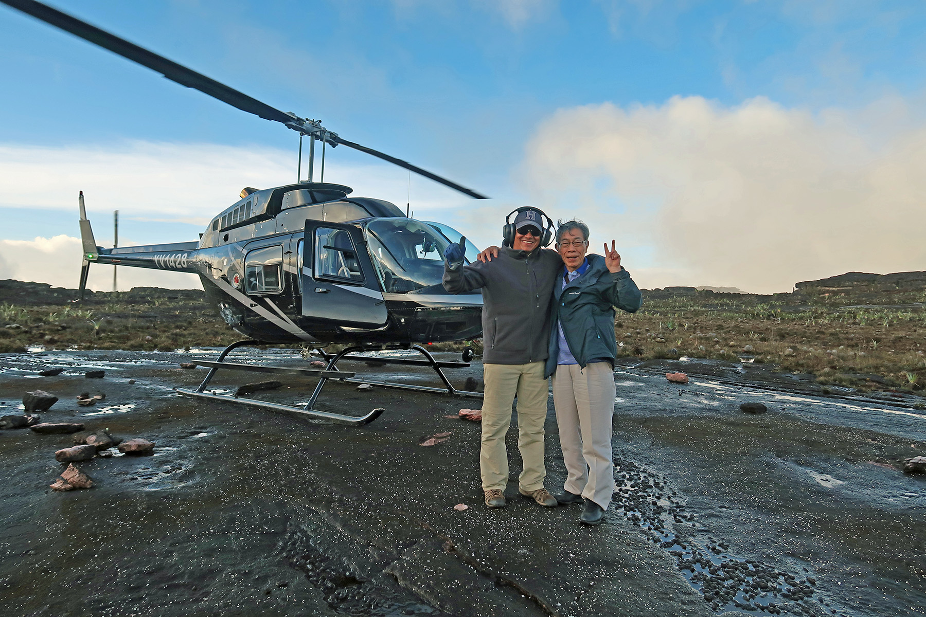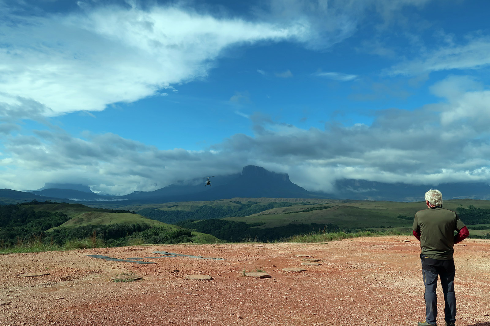 ロライマ山の山頂は雲の覆われている。これではヘリは着陸できない。