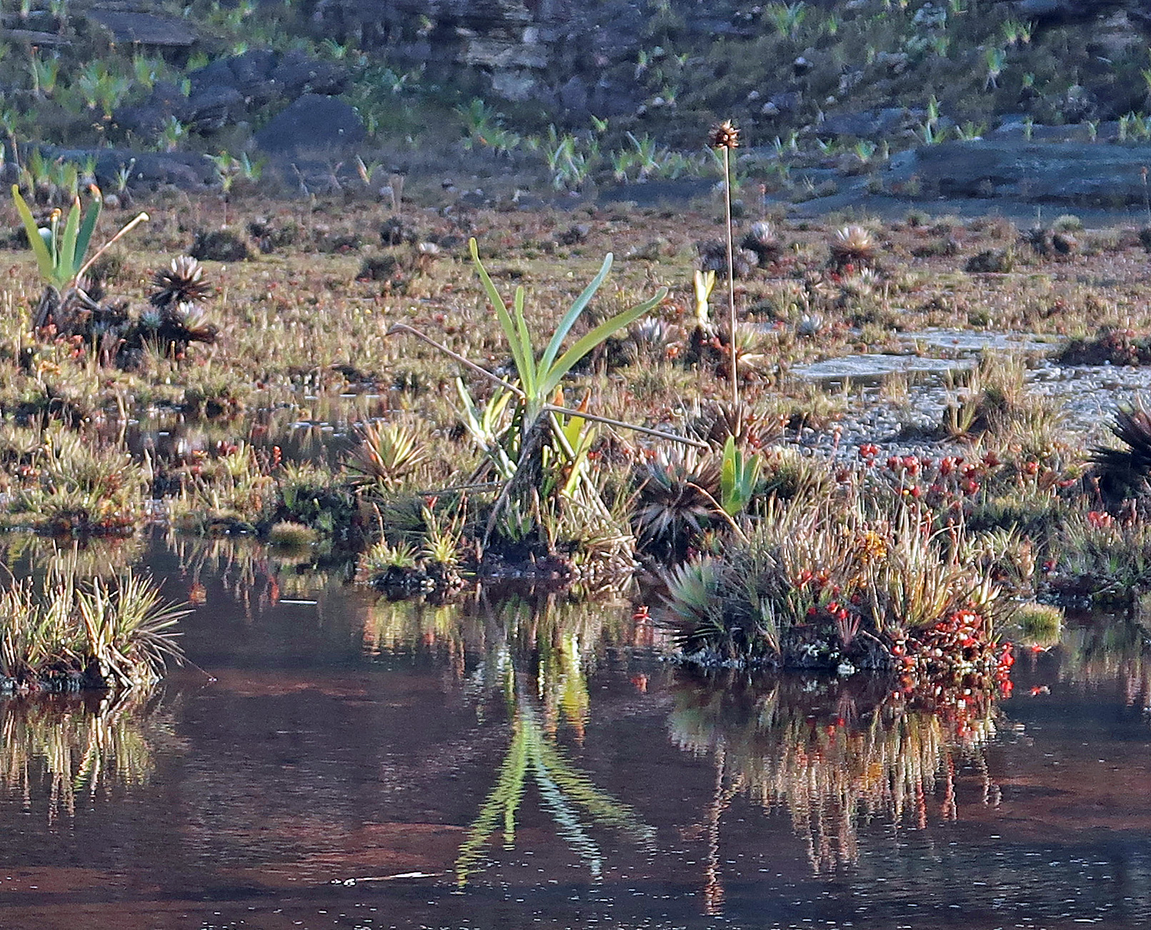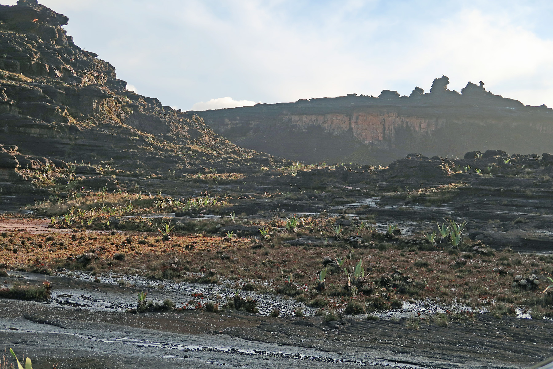 頂上の台地の様子 太古の地球を残す奇妙な形の岩と独特の植物