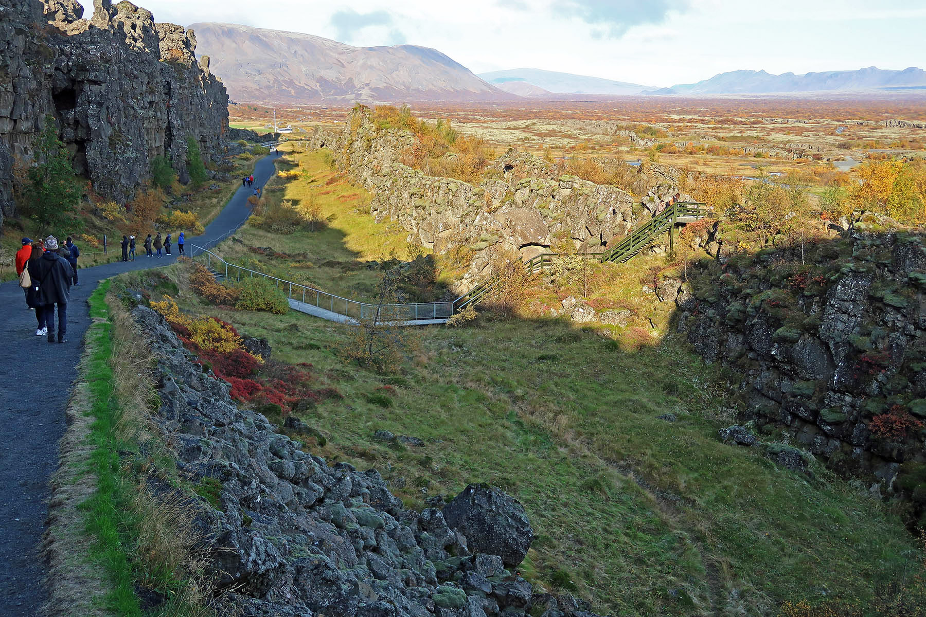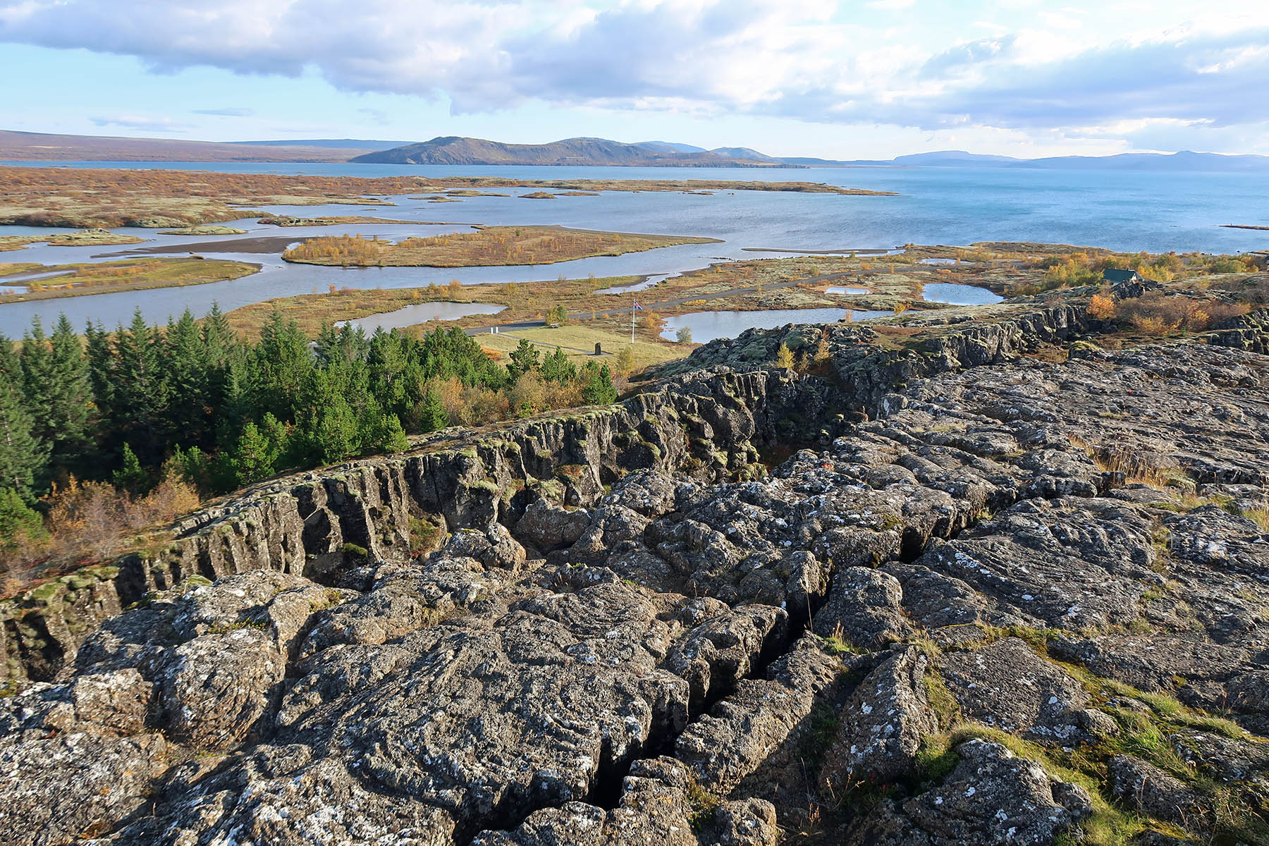シンクヴェトリルの西端に位置する長ぁE岩割れ目断層アルマンナギャゥEElmannagj?EE西の一帯は