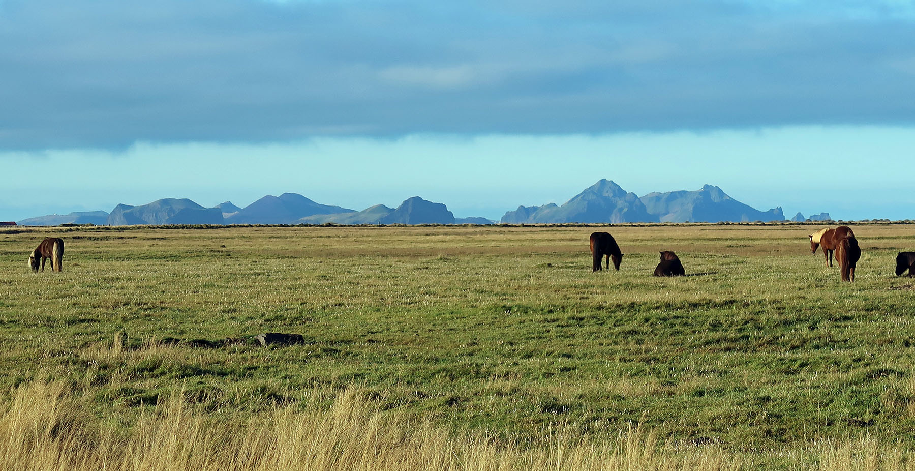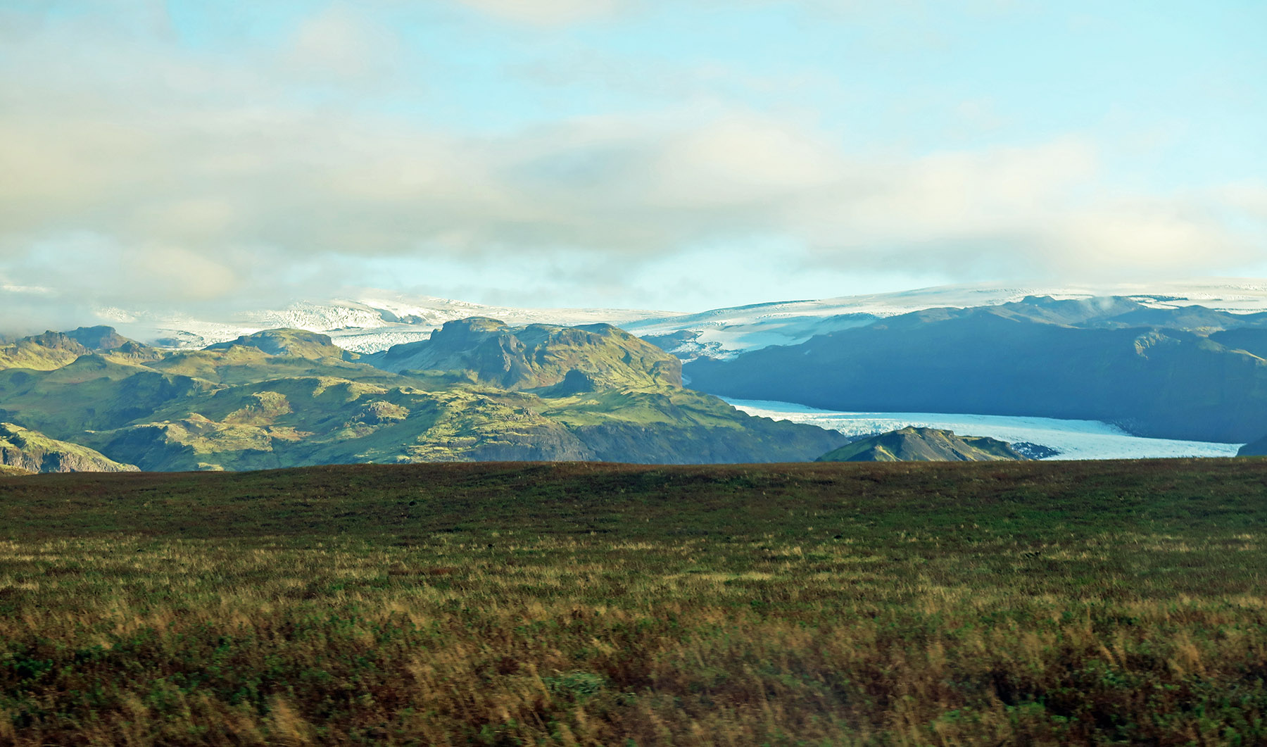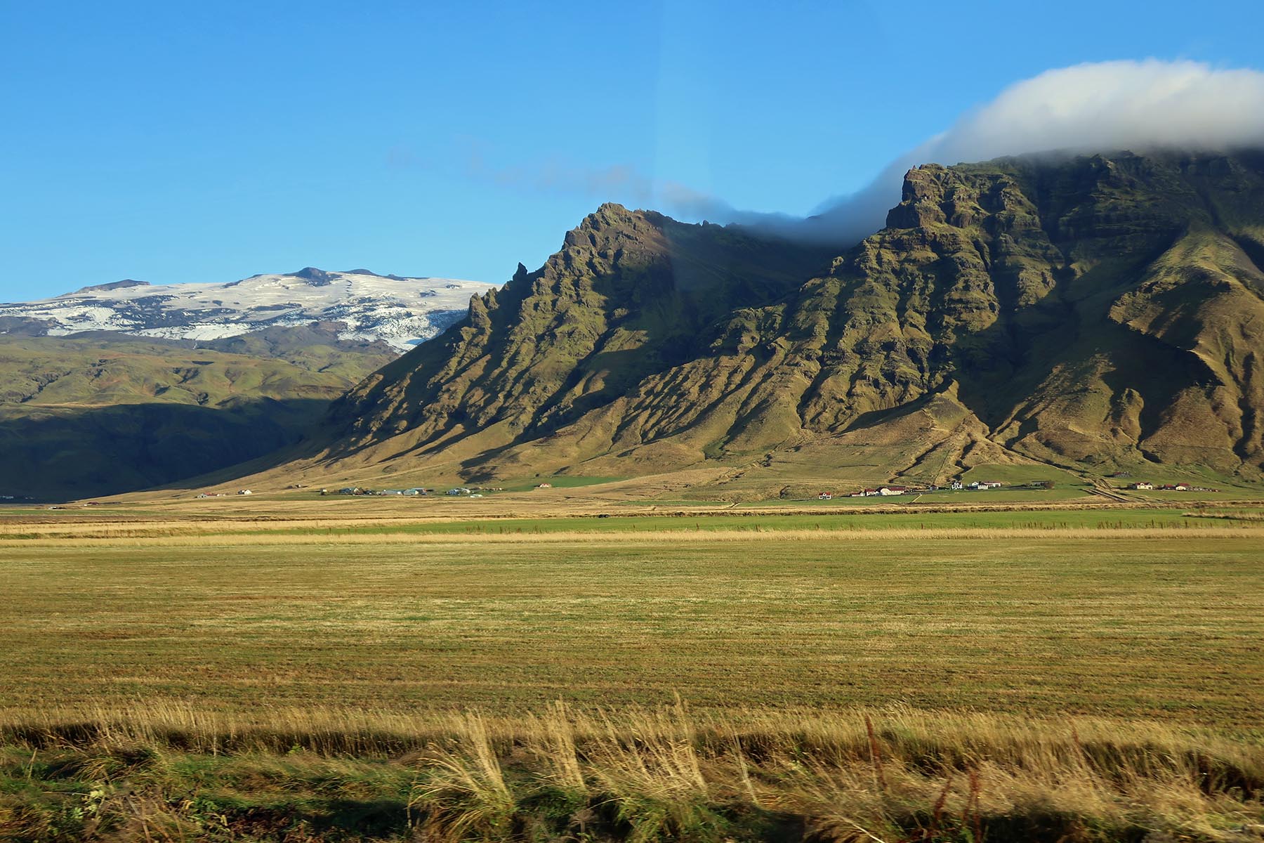 | 2010年の、この右奥のエイヤフィヤトラヨークトルの小さいな山で噴火がおき、