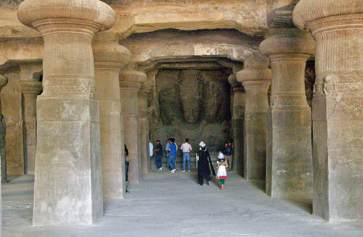 アラビア海の小島エレファンタ島に5〜8世紀に建設された7窟のヒンドゥー教の石窟寺院.
