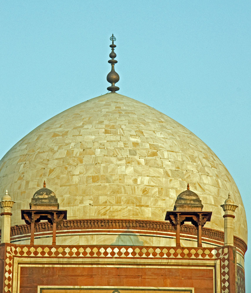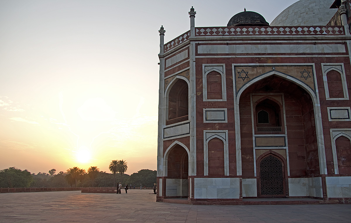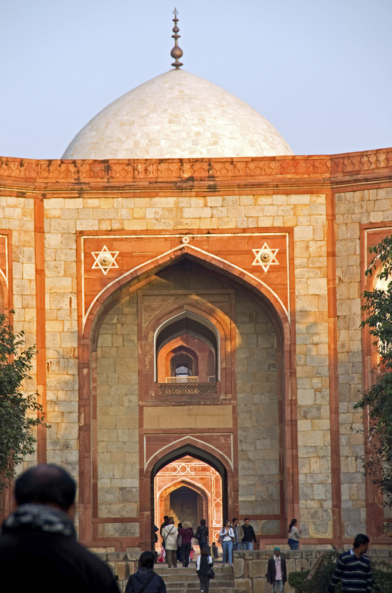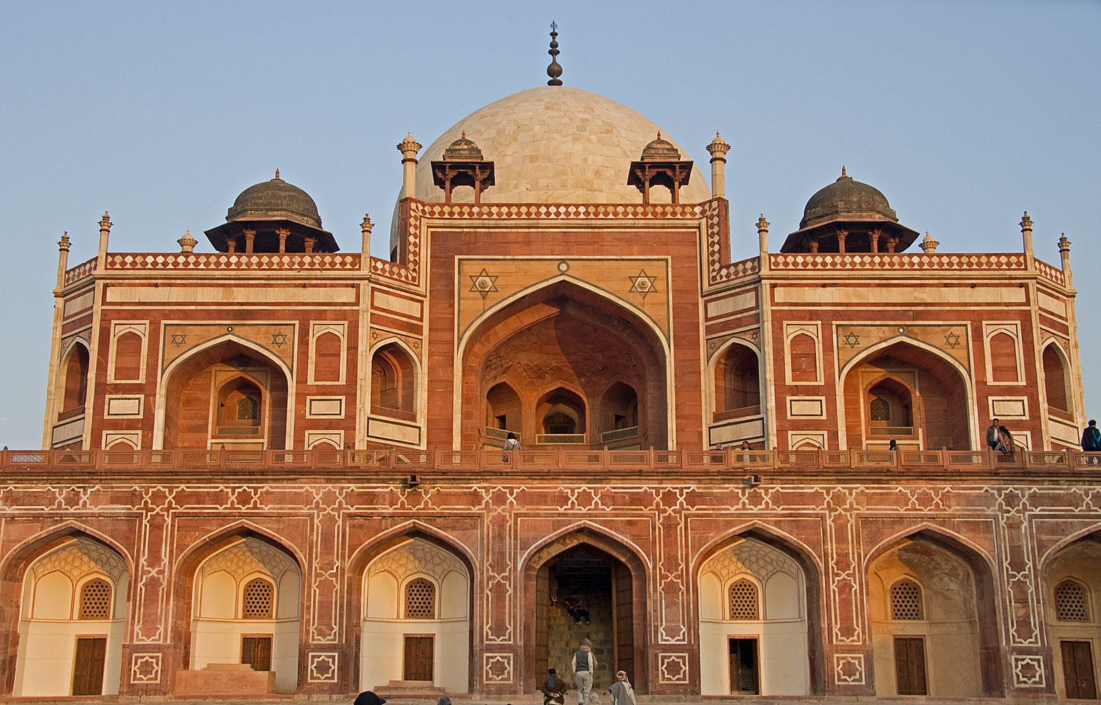 フマユーン帝はイスラム教徒だったが,壁面装飾にはユダヤ教やキリスト教などの多くの様式が施されている.イスラムのペルシャ文化とインド伝統の様式が融合されたこの霊廟から,ムガル建築という華麗な様式が生まれ,タージ・マハルに継承されて,その美は絶頂を極めた.廟の門などを飾る象嵌細工にはダビデの星*が見える.