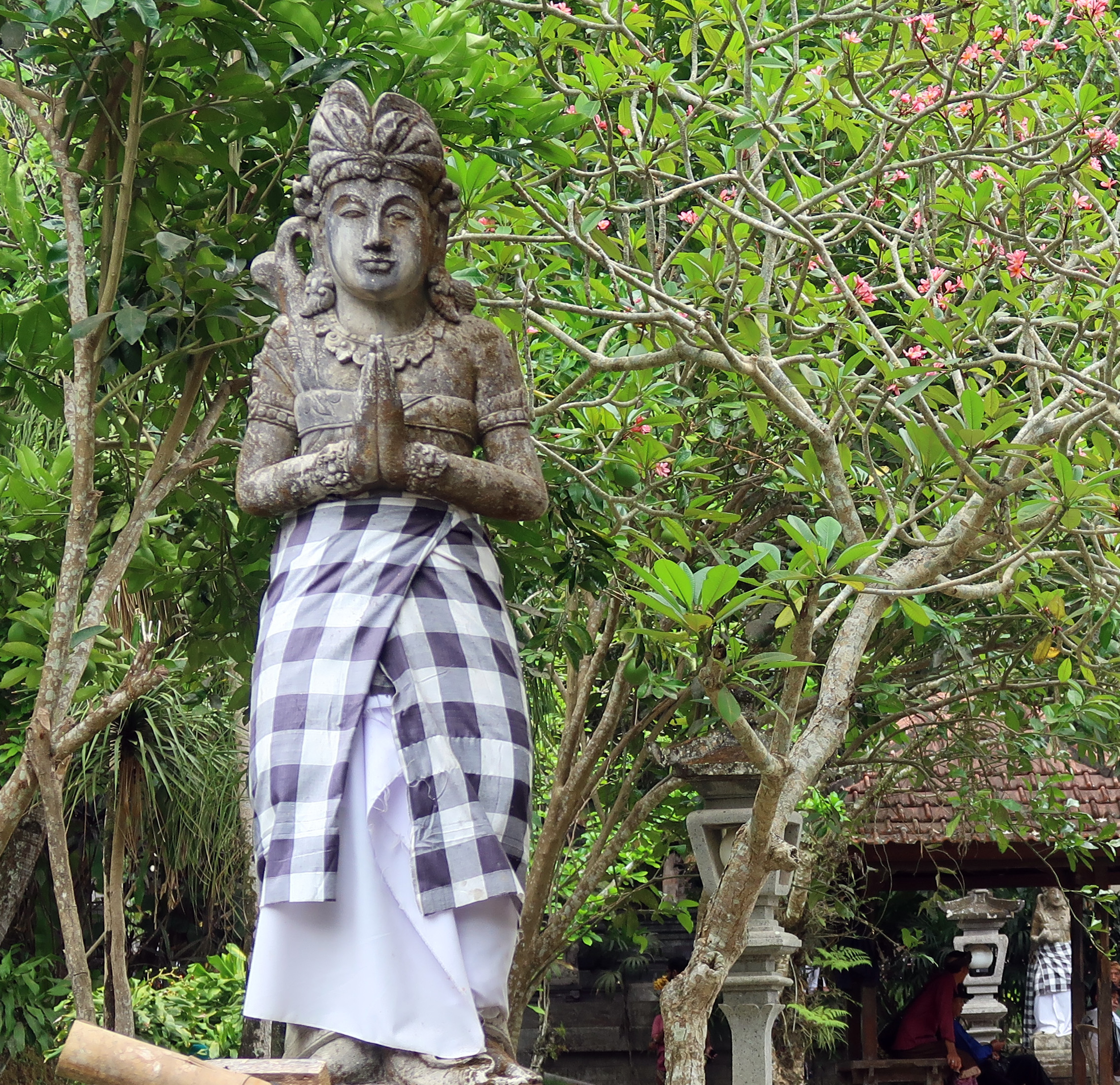 顔のレリーフが掘られた洞窟とその手前の広場には女神が彫られた沐浴場があります。この沐浴場は1945年に発見され戦後バリ島最大の発見と言われています。