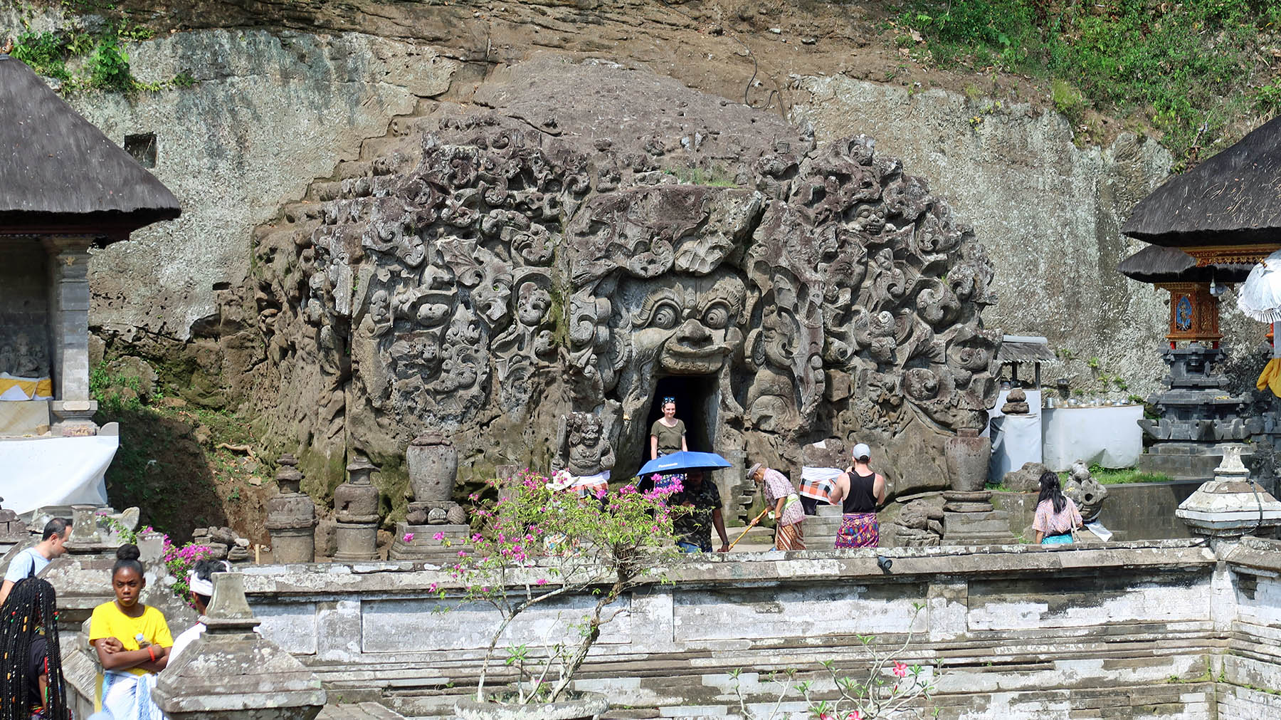 ゴアガジャ遺跡(Goa Gajah)は、ウブドの東およそ4Kmに場所にある、11世紀ごろの古代遺跡で、なぜここに、何の目的でこのような遺跡があるかは、はっきり分かっていませんが、僧侶が瞑想や修行をした場所、と言われています。