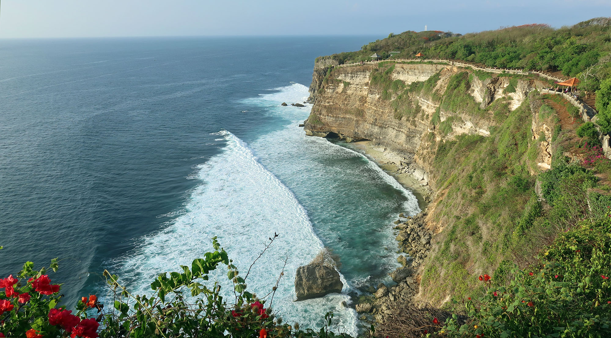 海岸の崖の上のウルワツ寺院からインド洋の絶景