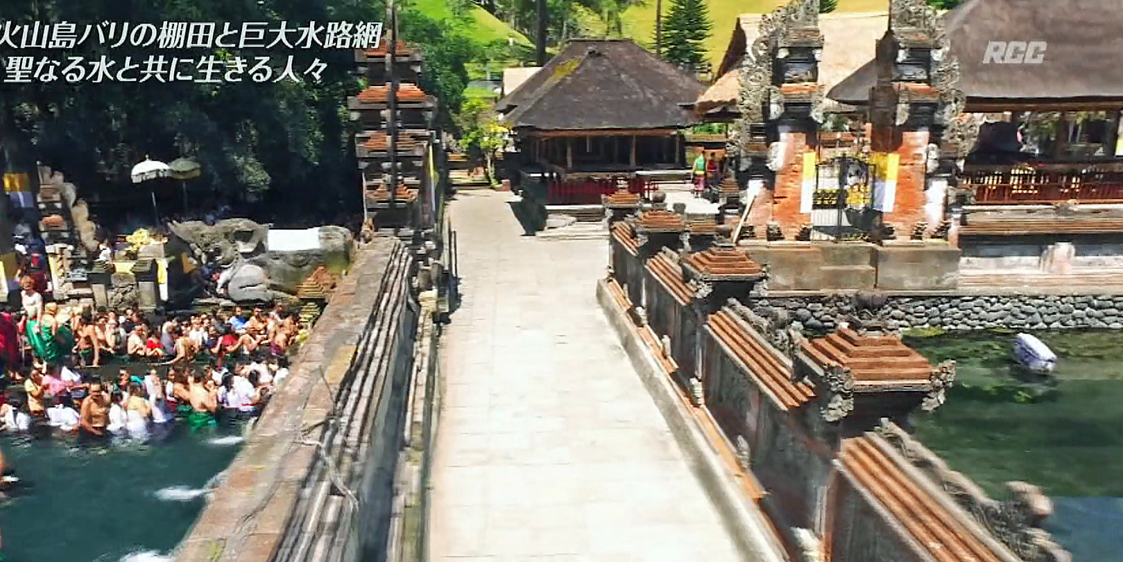 寺は聖なる湧き水の場所に建てられた 湧き水は沐浴に使われ、ライテラスに供給される。(TV放送から)
