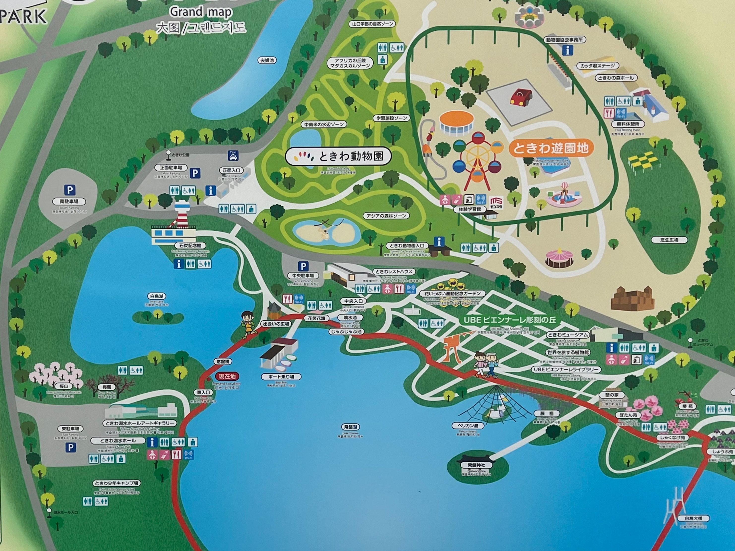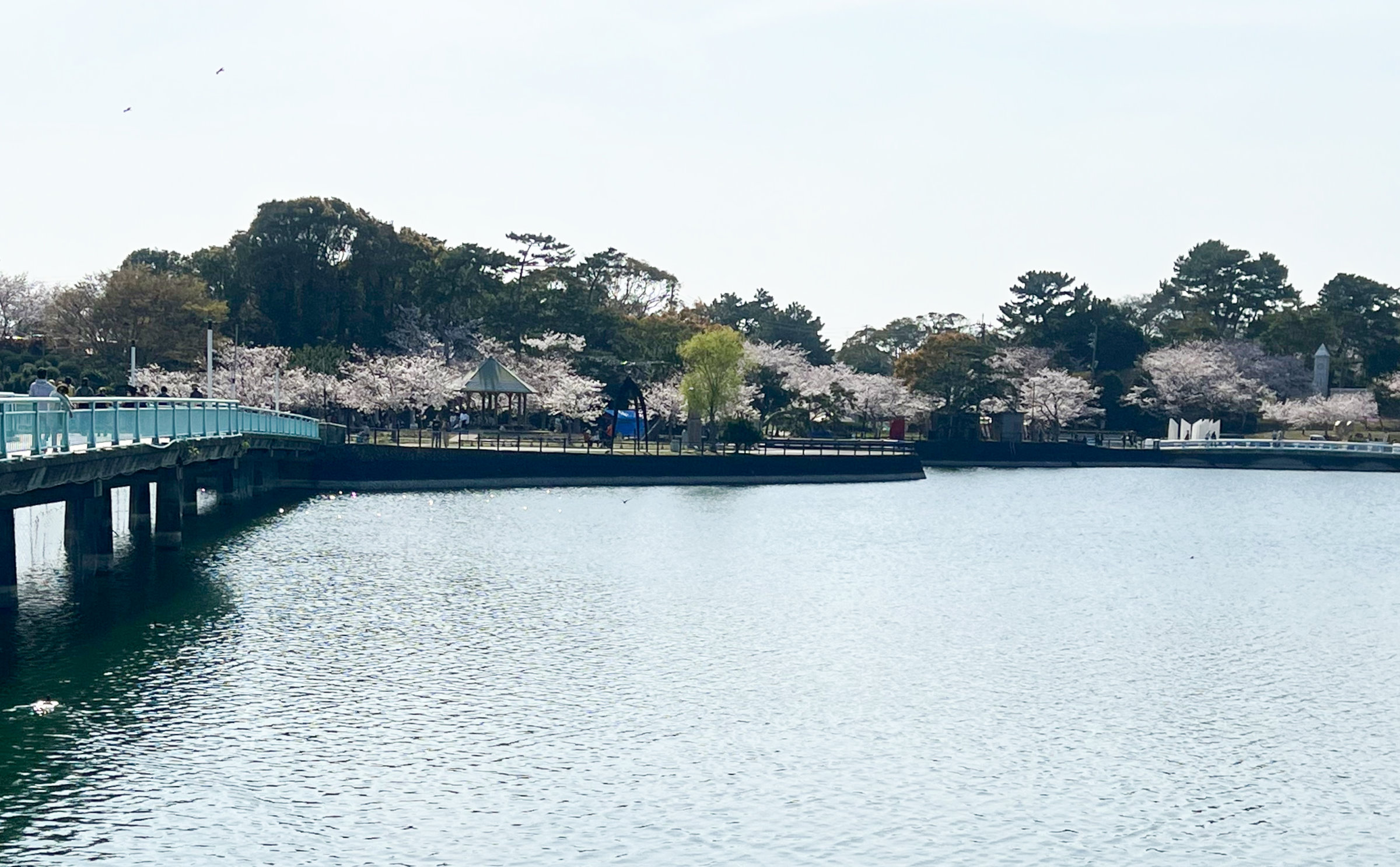 東入口から常盤湖と桜