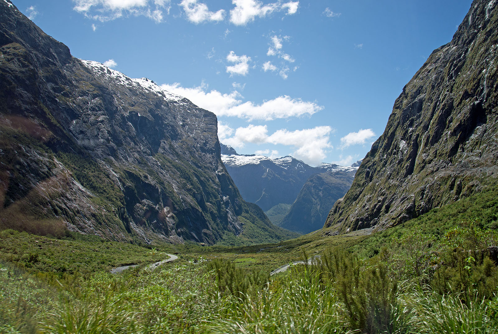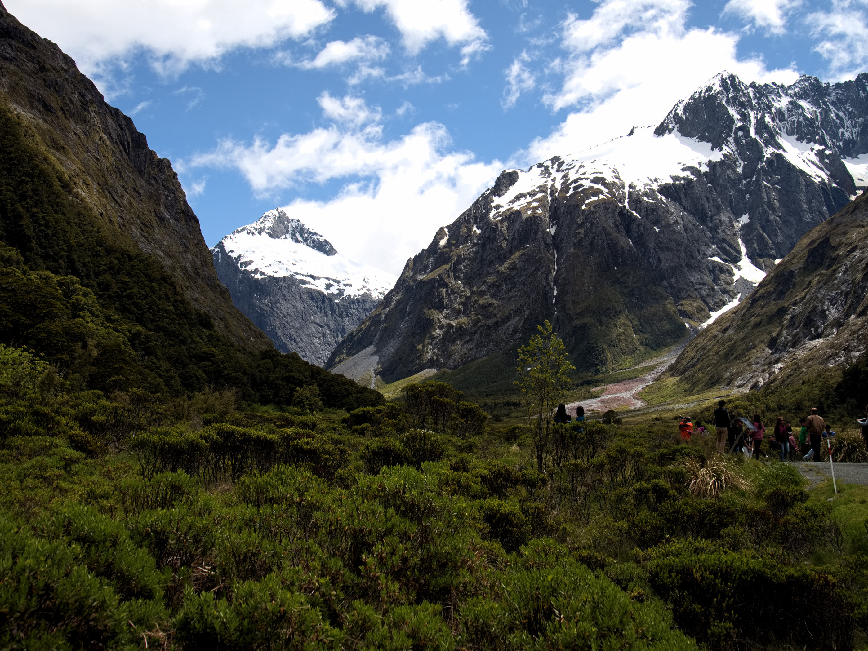 テアナウ湖から56kmでミルフォードサウンドまでの州道94号線の中間にある湖です。風がないと湖面がまさに鏡のようになって、周囲の山などを見事に映し出す。湖に設置されている看板は文字が反転&逆さまに書かれており、湖面に映ると読むことができる。