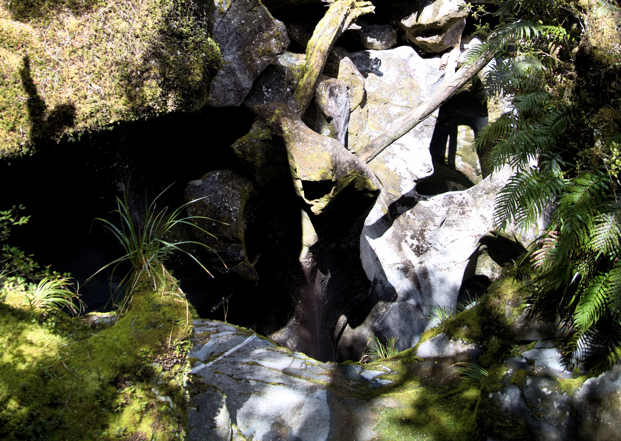 キャズム(Chasm)とは、大きな裂け目、亀裂という意味がある。名のとおり、クレダウ川の急流によって侵食された豪快な奇岩群がある。ここは遊歩道が設けられており、周囲は大羊歯等が茂る原生林になっている。