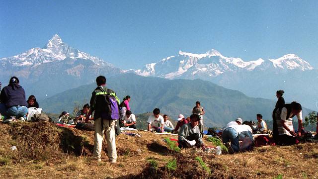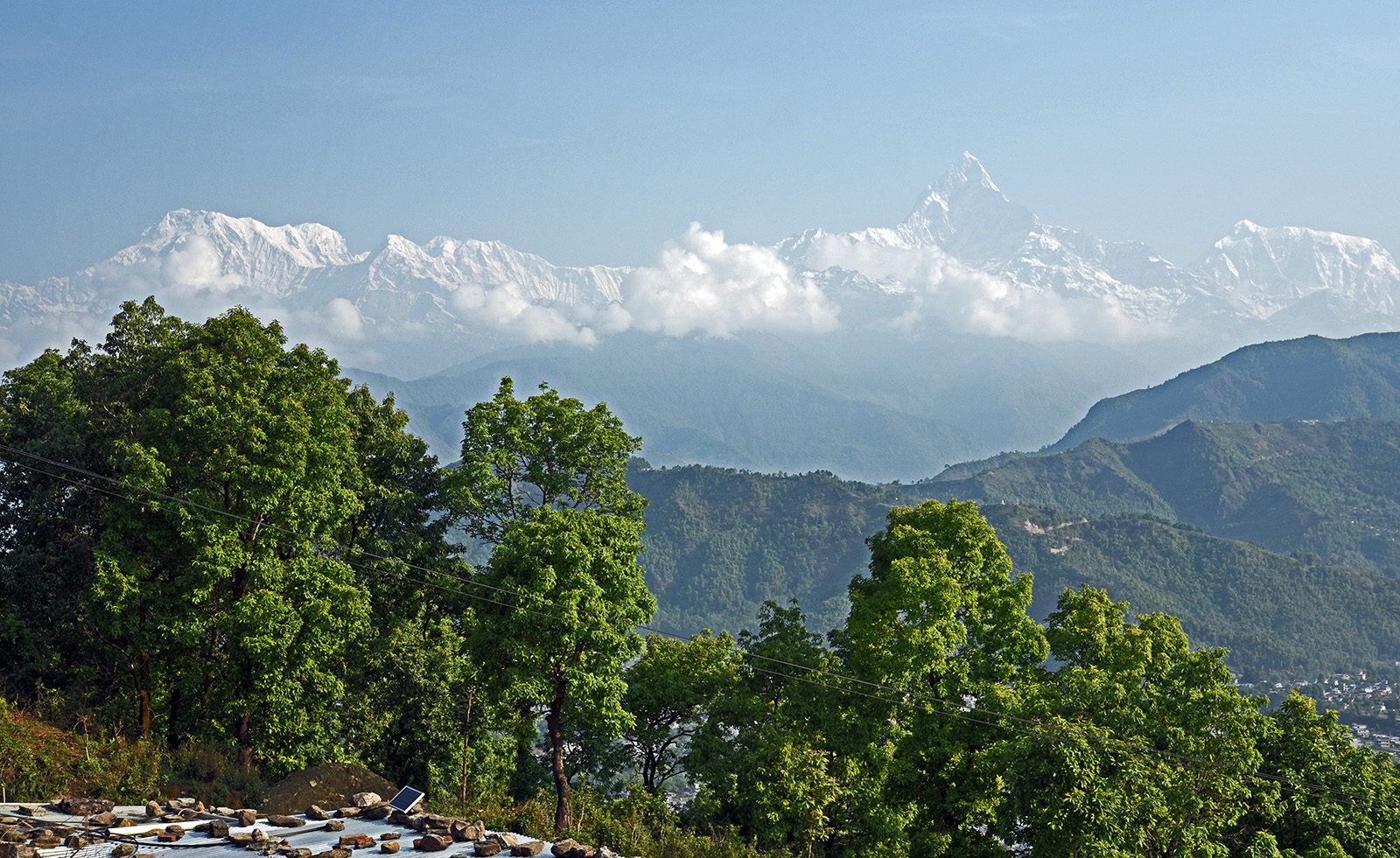 ポカラの北郊外にあるサランコットの丘は1592mの高さに位置し、アンナプルナ連峰を望む大展望台として絶景がたのしめます。