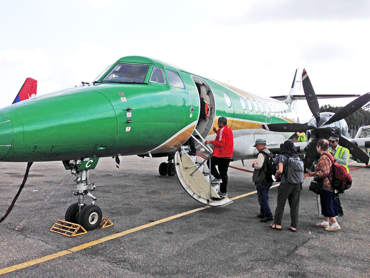 ポカラ空港へ向かい、Yeti Airlinesの小型機でアンナプルナ遊覧飛行へ出かける。