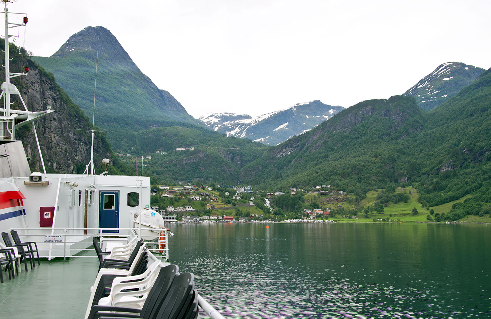 ヘレシルトでフェリーに乗船し、ガイランゲルフィヨルドを鑑賞。