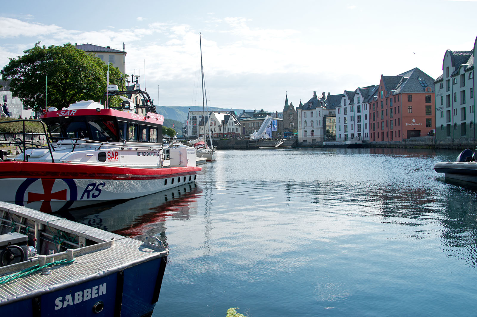 アールヌーボー調の建物が並ぶ美しい魚港 1904年1月23日に大火に見舞われ、街の中心部が焼失した際、ノルウェー国内のみならず、外国からも多大な援助を受けた。特に頻繁にフィヨルド群へ休暇で訪れていたドイツ皇帝ヴィルヘルム2世はドイツ国内に於いて大々的にオーレスンへの支援を呼びかけ、オーレスン復興の最大の貢献者となった。