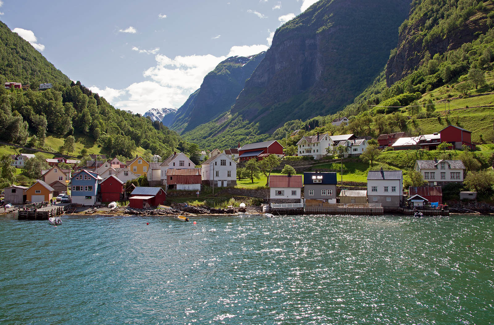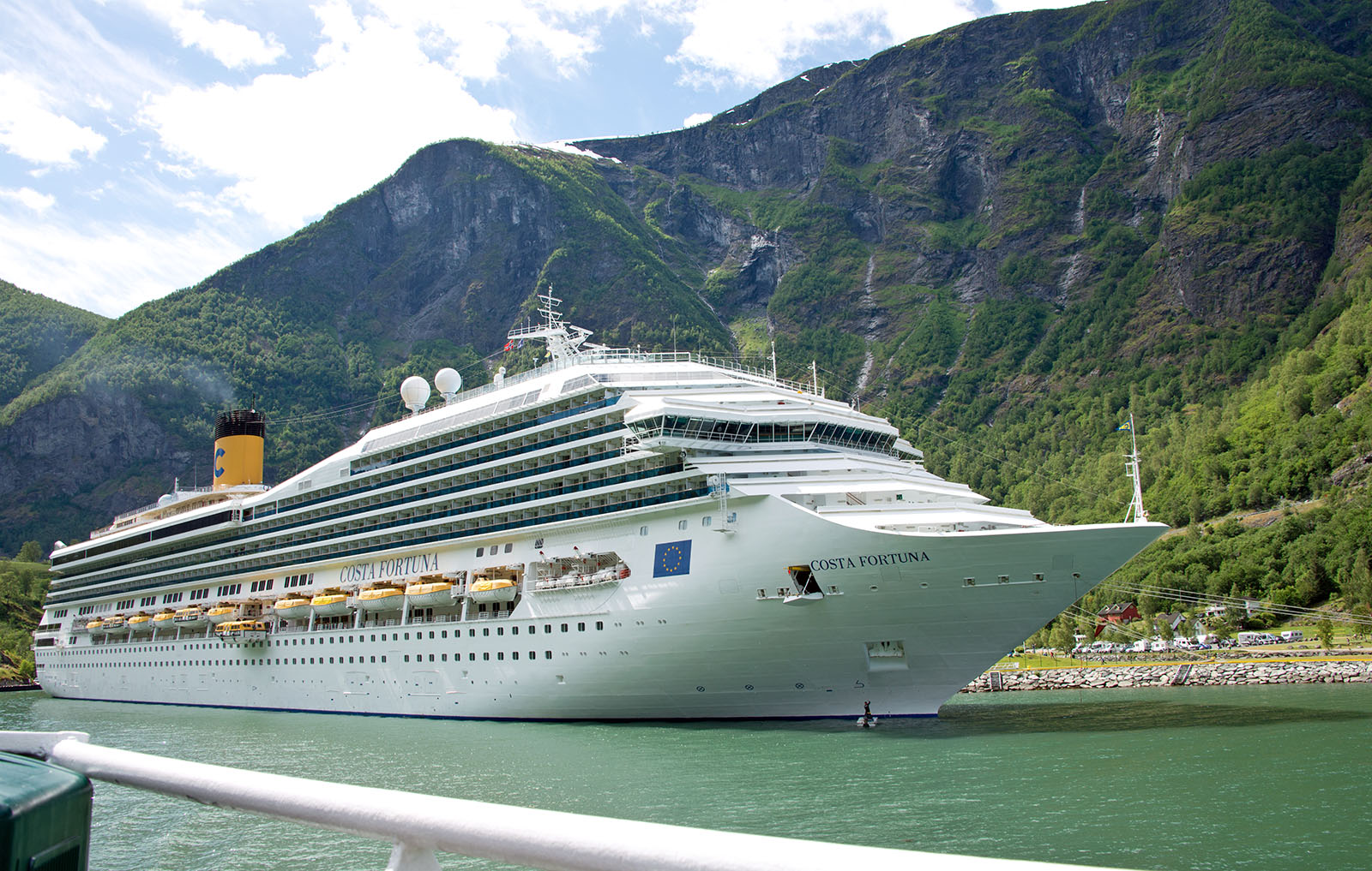 フロム鉄道の終点で、大型クルーズ船の接岸できる港がある。ここで鉄道に乗り換え、フィヨルドの景色を楽しむ大型クルーズ船の客であふれていた。