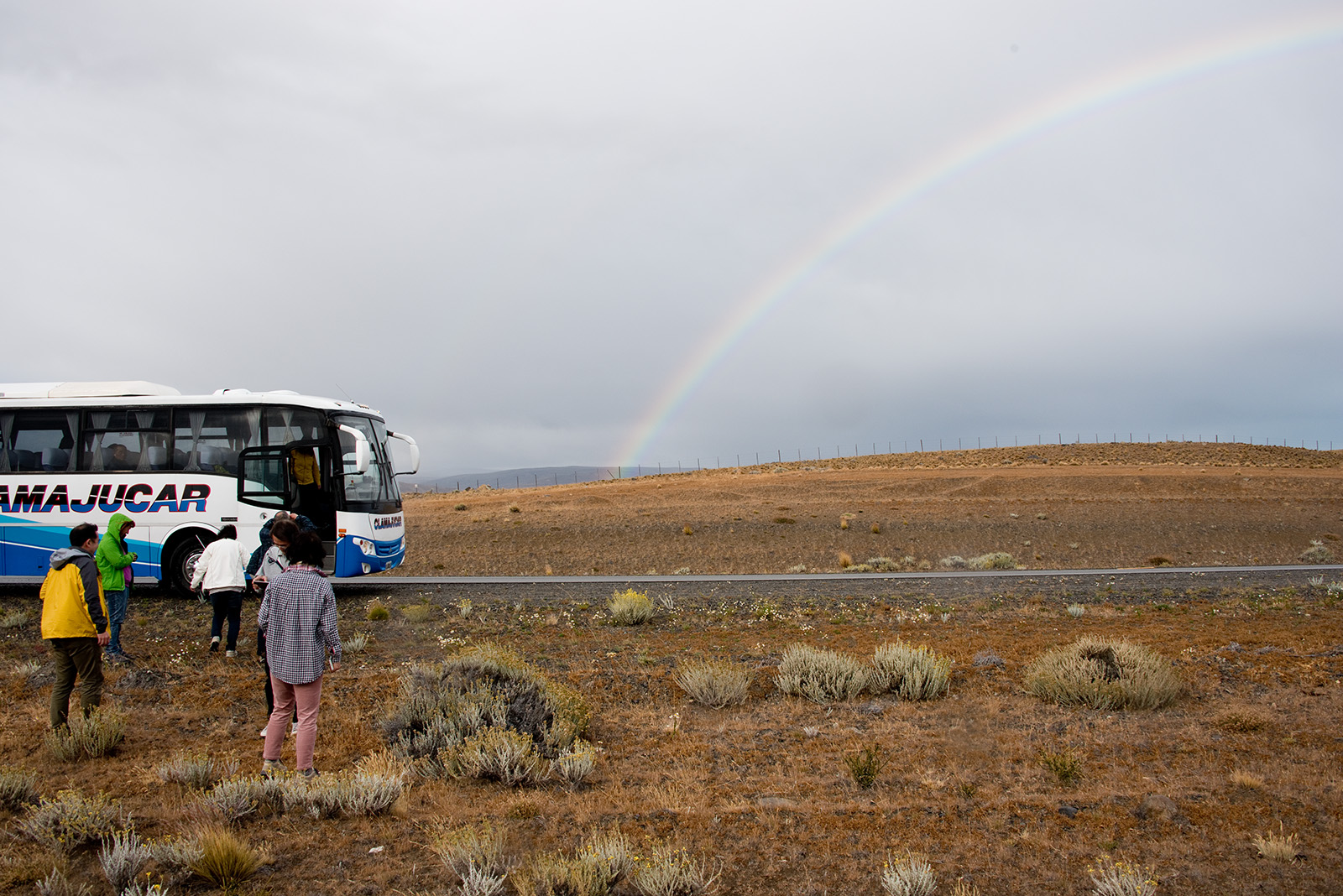 バスでエル・チャルテンの向かう、コンドル、ラ・レノマのカフェ、ピエドマ湖とピエドマ氷河を眺める