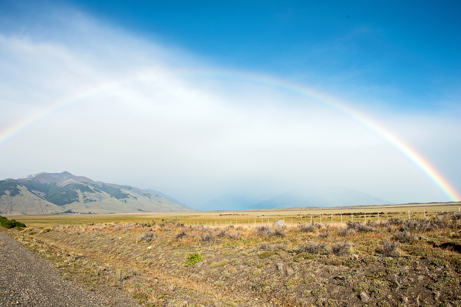 カアファテからバスでプエルド・バンデラ港に移動中に美しい虹を見る