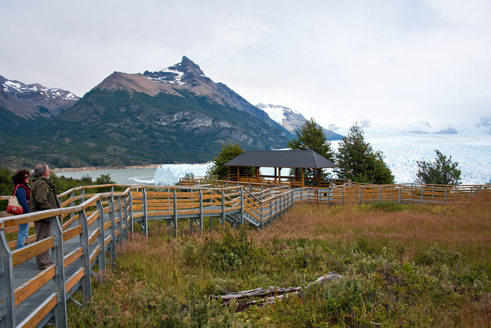 氷河に接する山に展望台があり、氷河の上部と同じ高さから眺める。