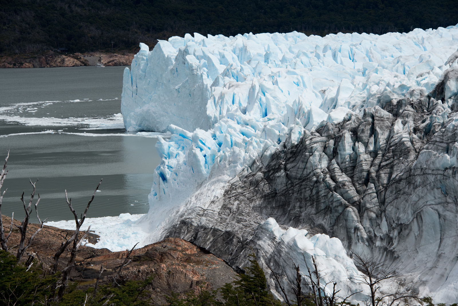 ペリト•モレノ氷河(氷壁の先でゴトゴトという音が聞こえる)