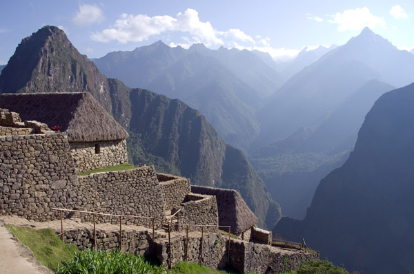 マチュピチュ村からシャトルバスで急な道を登り, 待望のマチュピチュ遺跡に入場。標高2500m程度で呼吸は苦しくない、日差しは強いが汗はあまりでない.