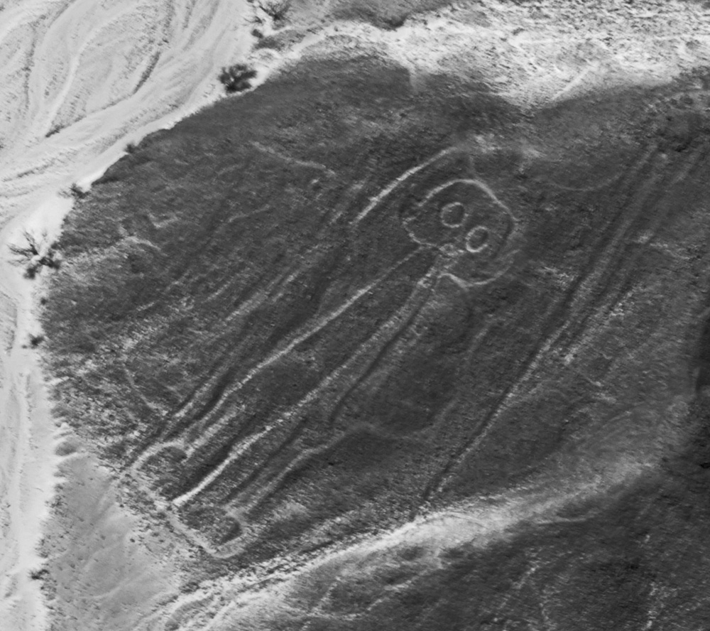 地上絵は思ったより小さく,水の流れた模様などに邪魔されて,飛行機からはなかなか見つけにくい.
