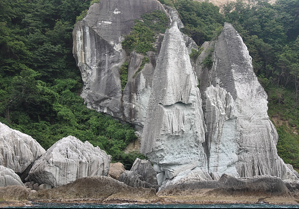 朝7:00 八戸出発、真奈のジムニーで、野辺地、むつ市、大間を経て、10時30分に下北半島先端 西側佐井に着く。佐井港10:40発、観光船サイライト号で仏ヶ浦に向かう。40分で仏ヶ浦に着く。