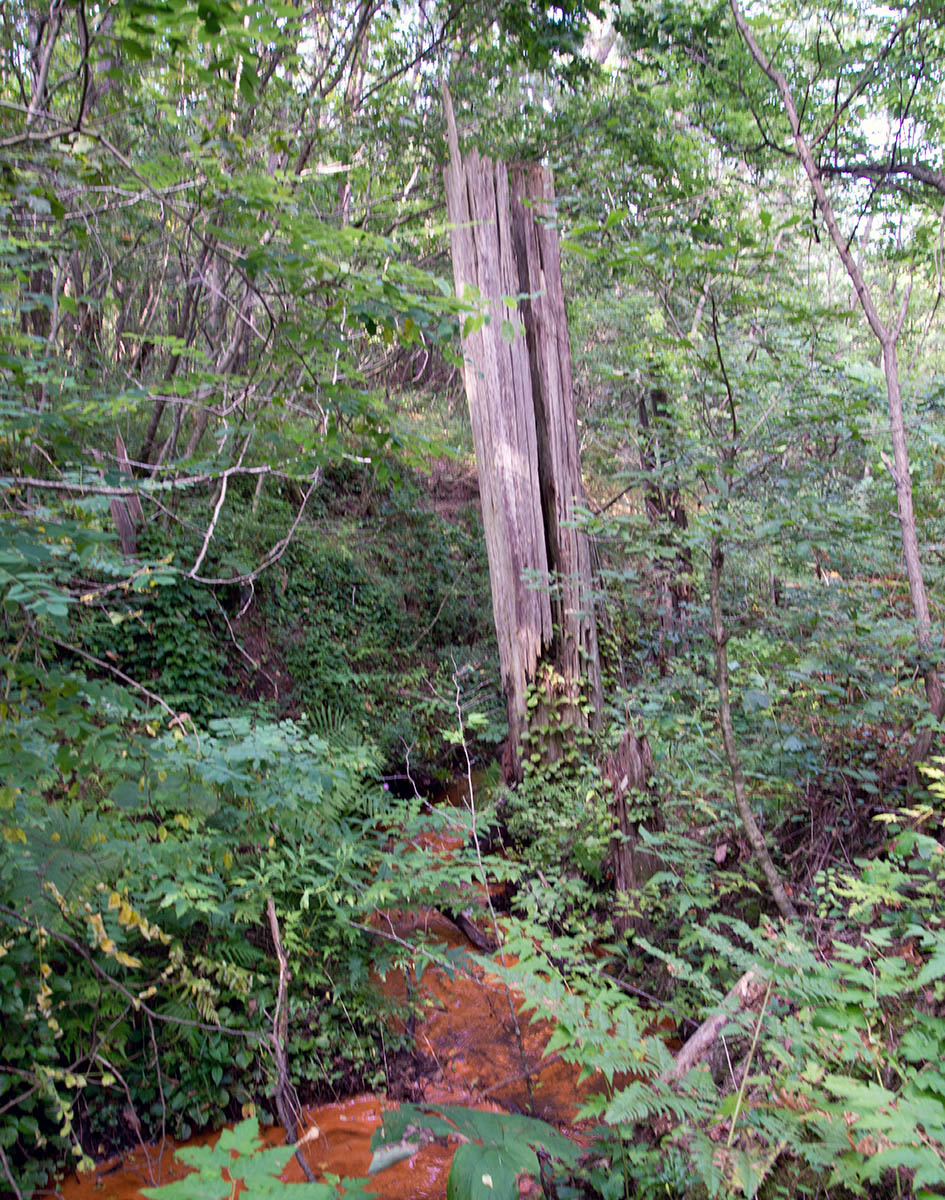 川沿いに左に歩くと多数の埋没ヒバに出会えます。