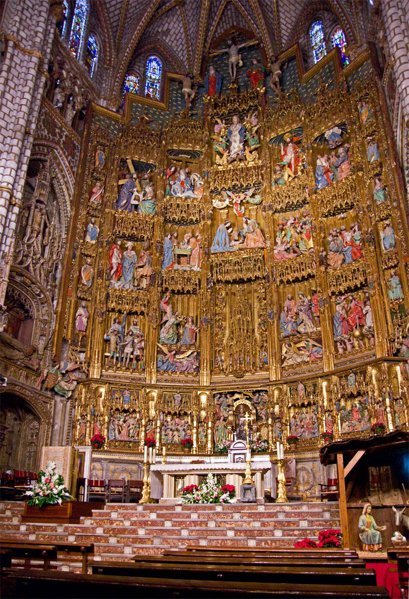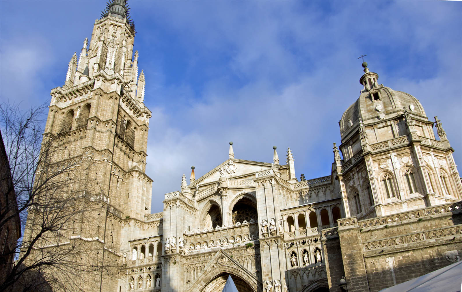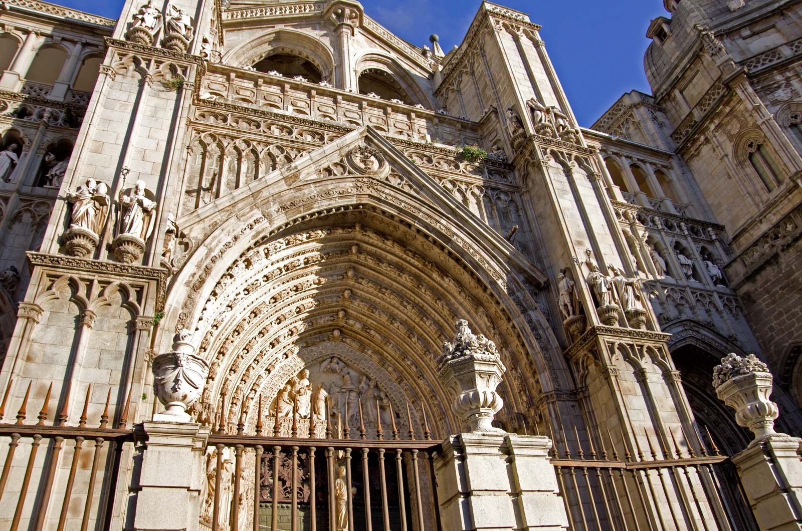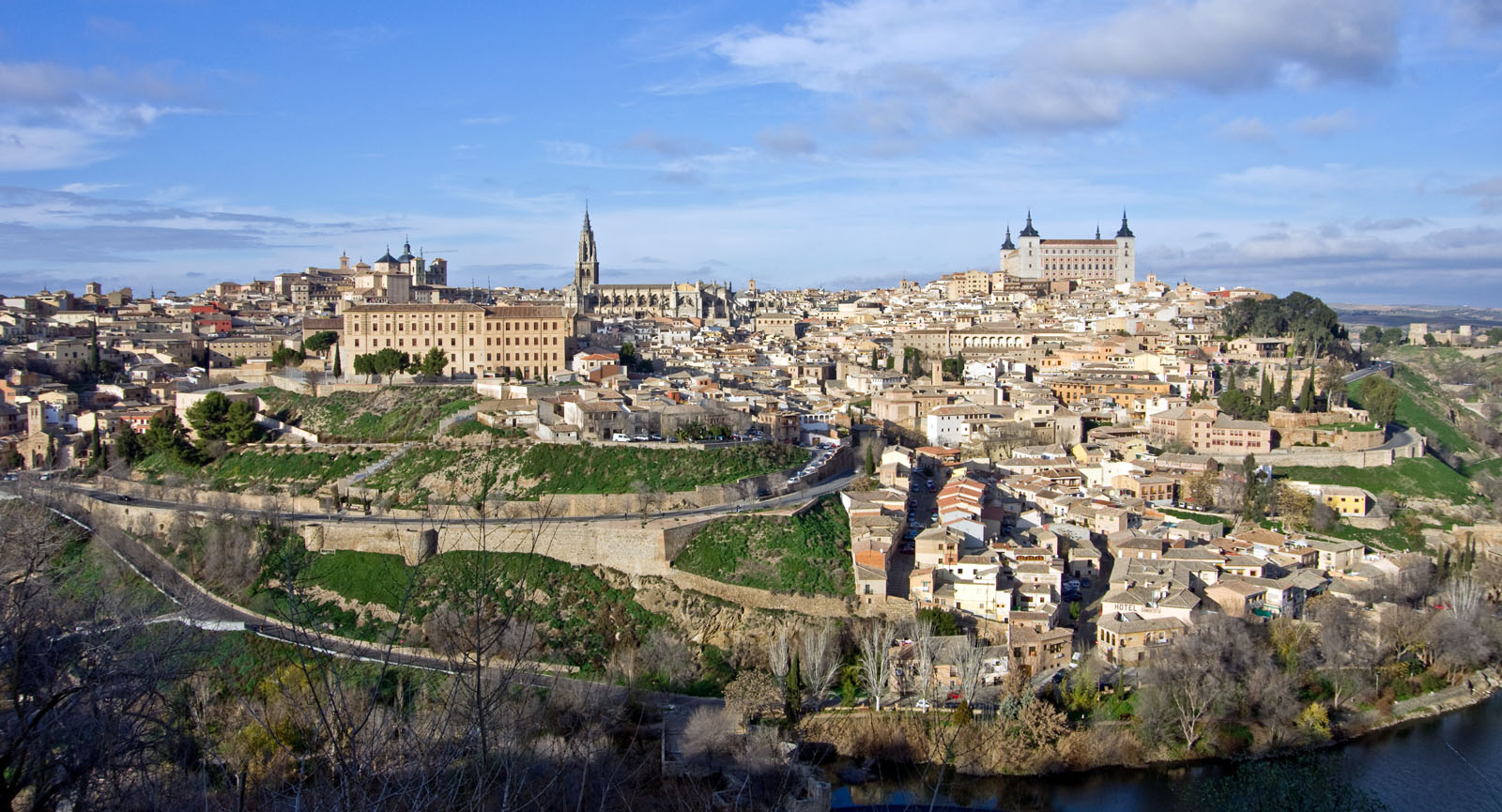 トレドはスペイン中部のカスティーリャ ラ マンチャ州に広がる平原地帯の丘の上にある古代の城塞都市です。この城塞都市は、中世時代に建てられたイスラム教、ユダヤ教、キリスト教の歴史的建造物があります。中心に荘厳な大聖堂があります。ムーア様式を用いたビサグラ門とムデハル様式を用いた太陽の門が旧市街への入り口。旧市街にはたくさんの人で賑わうソコドベール広場があります。トレド旧市街全域が世界遺産登録されている。また、マニエリスムの画家エル・グレコが暮らしていた街でもあります。