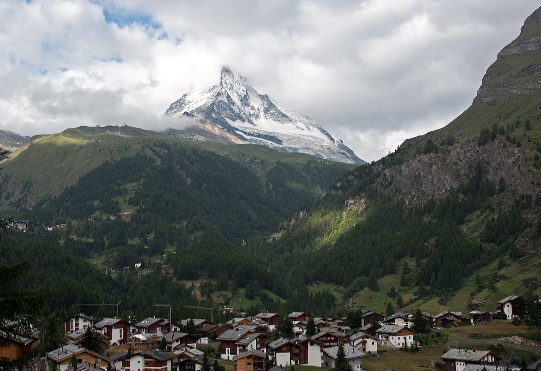 ツェルマットから見たマッタホルン(ほとんど頂上まで見えているが)
