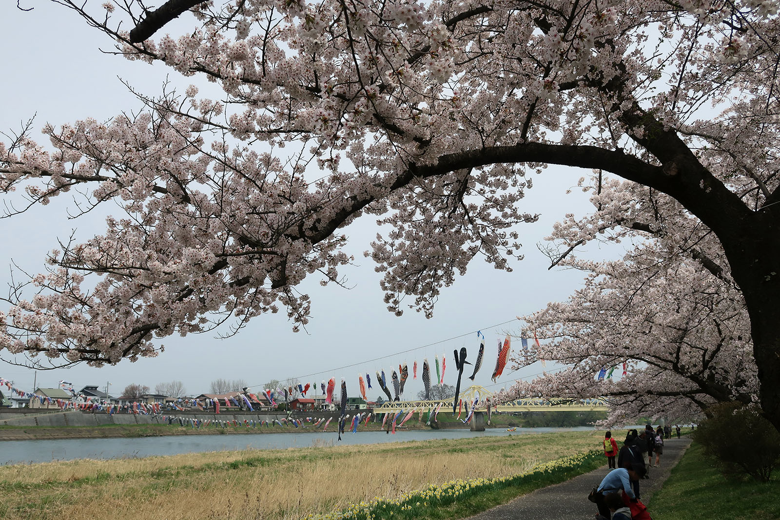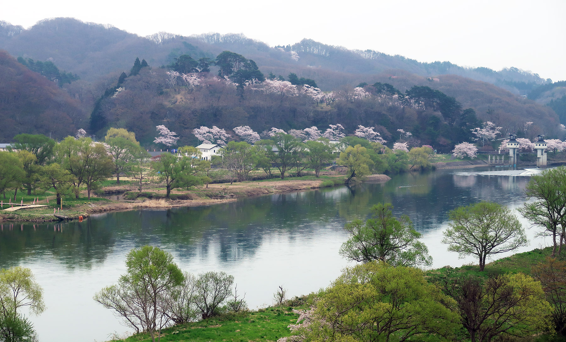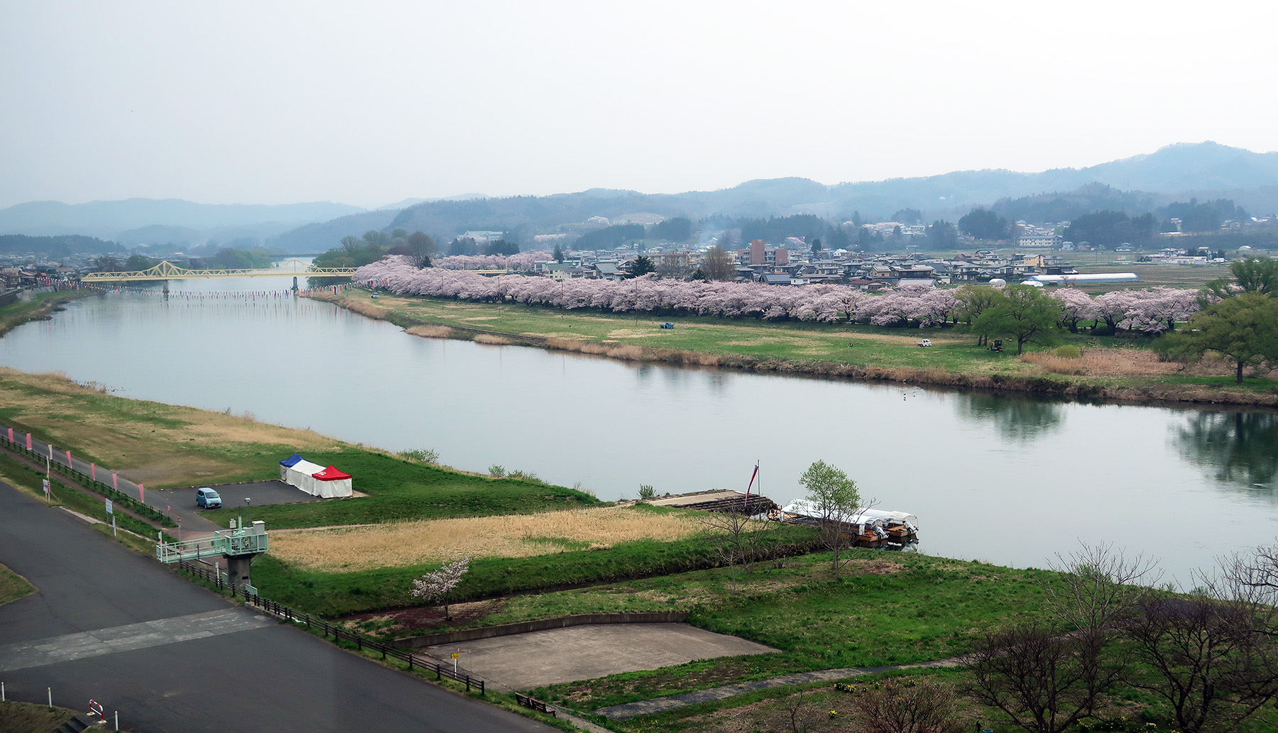 北上展勝地は、全国の桜名所百選に選定され、青森県弘前市・秋田県角館町と並び「みちのく三大桜名所」となっています。北上川沿いの約2kmの桜並木は、桜のトンネルとなり、訪れる人々を優しく迎えます。また、夜には、ライトアップされ、幻想的な雰囲気が醸し出されます。まつり期間中は並木間を観光馬車、川面には観光遊覧船と渡し舟が往来し、300匹の鯉のぼりが空を泳ぎます。