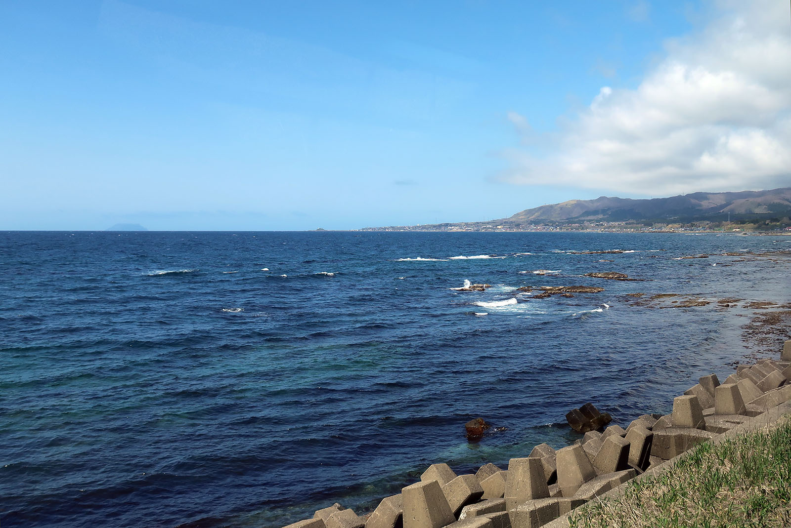 海の先に見えるのは下北半島 高野崎 竜飛岬