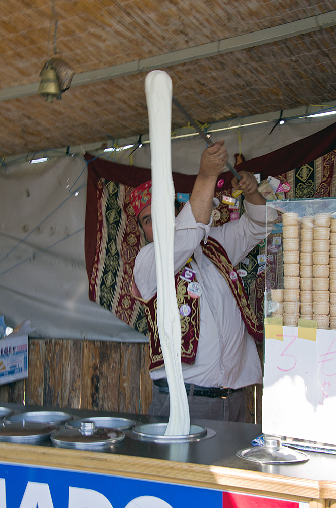 ユリ根をいれて粘りけのあるアイスクリームを食べる。