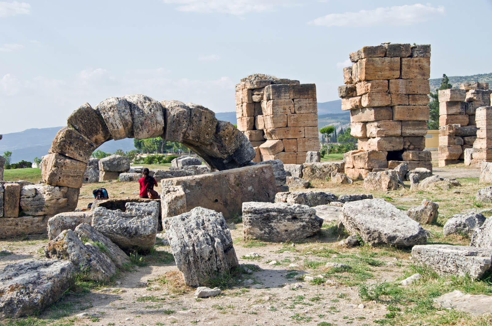 ヒエラポリス-パムッカレ トルコ西部・デニズリ県にあるユネスコの複合世界遺産 パムッカレは石灰華段丘からなる丘陵地の名前であり、2世紀頃にヒエラポリスというローマ帝国の都市があり、現在は遺跡が残る。