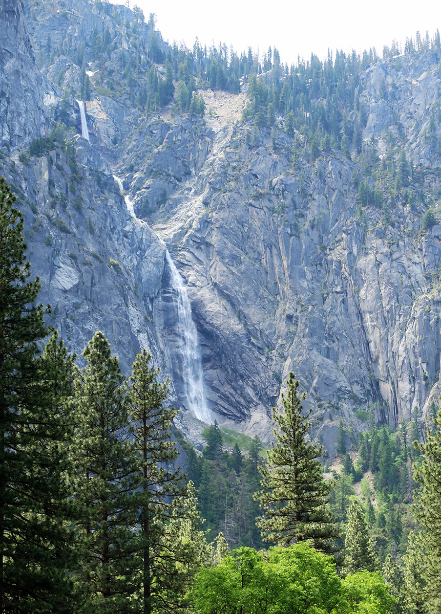 シエラネバダの峰峰 中央奥に最高峰ライエル山(3997m), ヴァーナル滝の上の丸い頂上がクラーク山 その右にグレーピーク, レッドピーク, 右手前がスターキング山