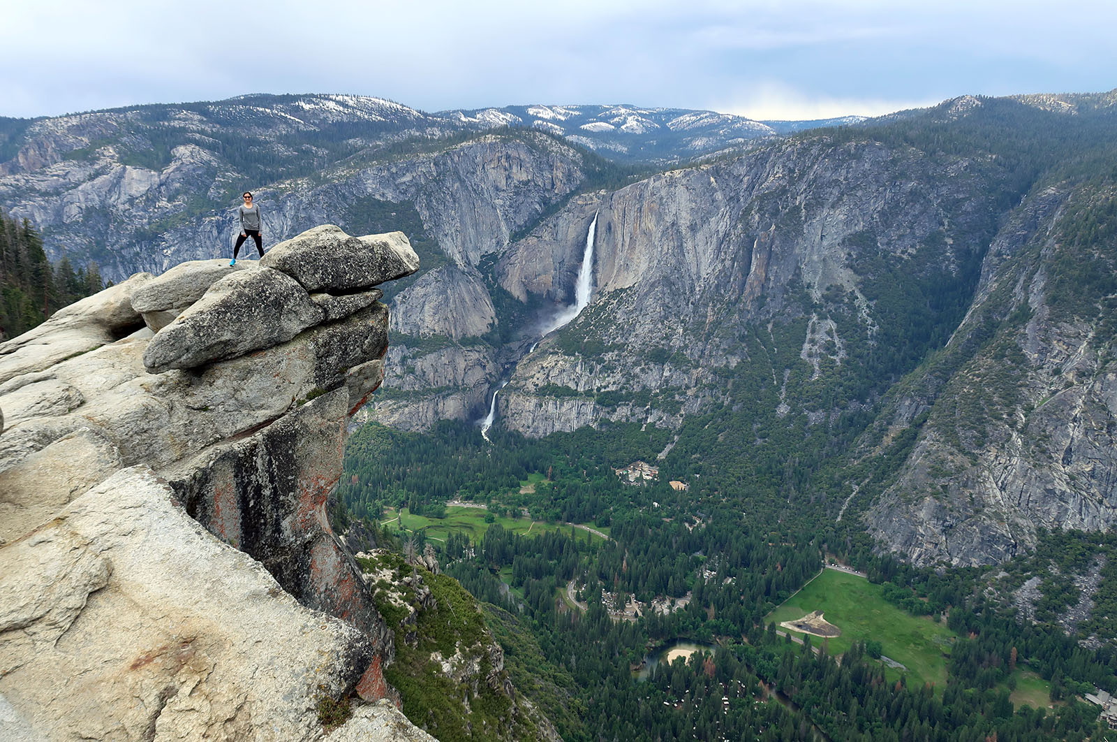 グレイシャーポイントは花崗岩でできた標高2,199mの断崖で、ヨセミテバレーを望むパノラマ展望台です。ここからは、ハーフドーム、クラウズレスト、リバティキャップ、バーナル滝、ネバダ滝、ヨセミテ滝などと周囲のハイシエラネバダ山脈の峰峰も見えます。ここはヨセミテで随一写真スポットです。ヨセミテバレーからシャトルバスで1時間ほど。バスのドライバーが説明してくれるが、もちろん早口の英語。 |
