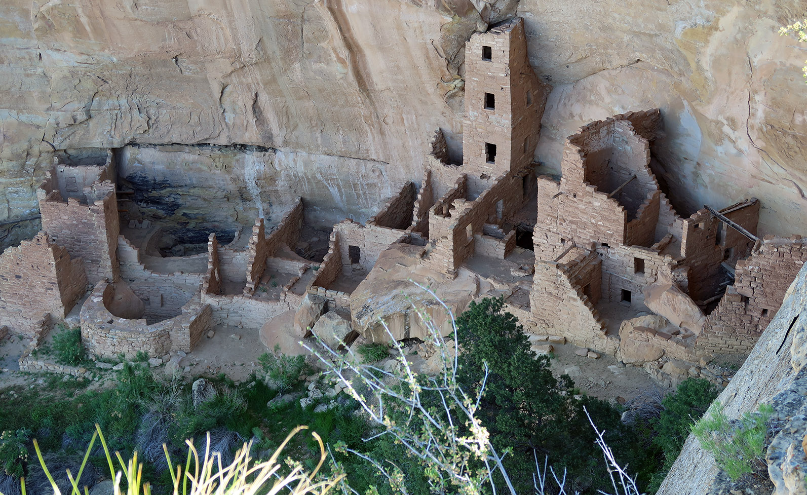 1世紀ごろから、この地に農耕民であるアナサジ族が住み始めたと推測されている。アナサジ族は、8世紀ころまでバスケット・メーカー文化と呼ばれる独特なかご作りで知られる文化を築いていたが、9世紀ころからキヴァという儀式を行う施設を伴う日干し煉瓦の壁によって区画された集落を築くようになる。これをプエブロ文化と呼び、 12世紀頃になると、外敵の襲来に備えた、本格的な「岩窟住居」を作り、そこに住み始めたと考えられている。 |