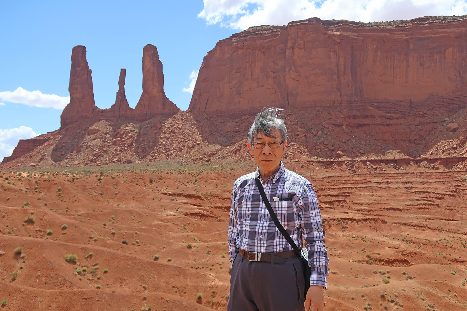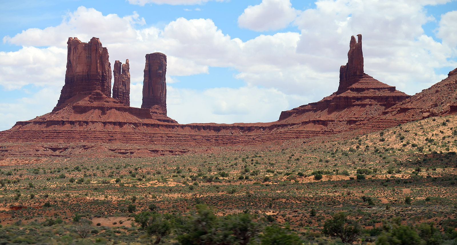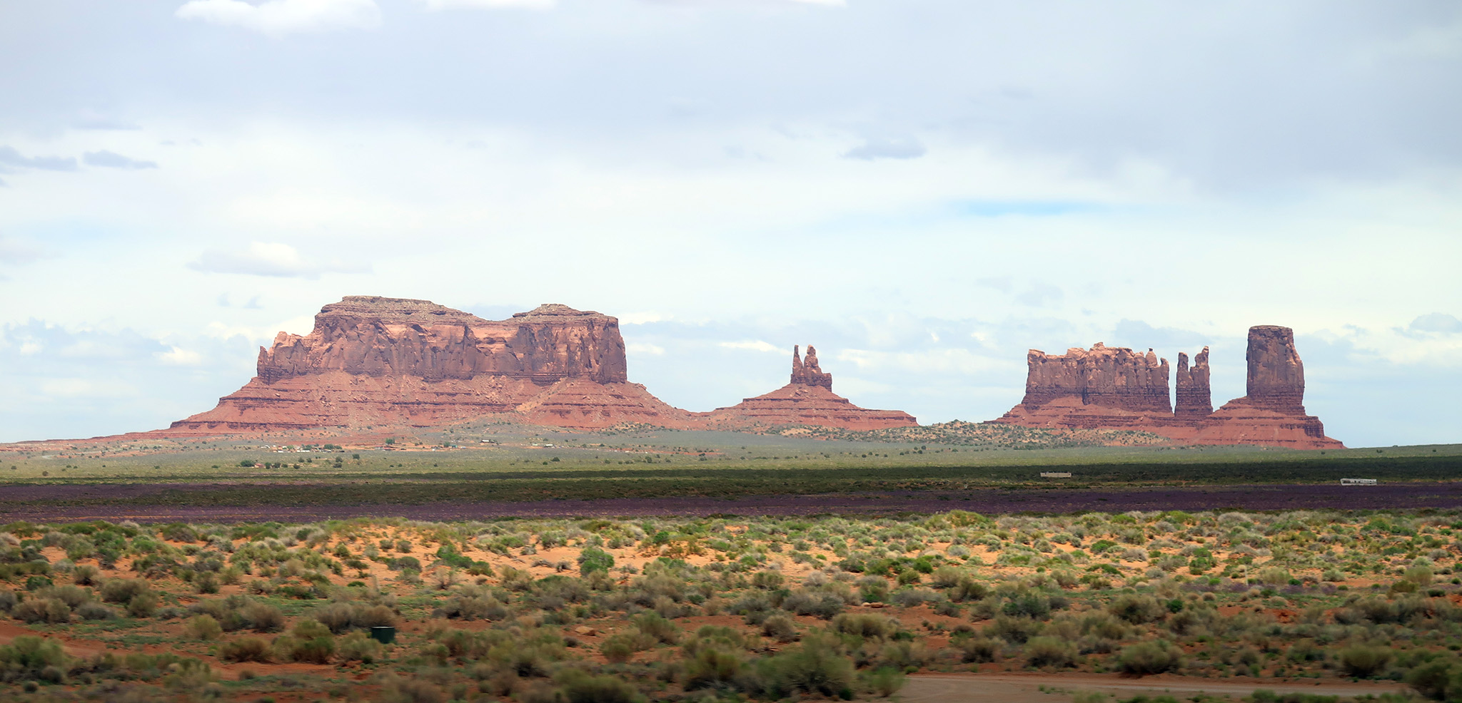 モニュメントバレーはUSAのユタ州とアリゾナ州かけて広がる地域で、メサと言われるテーブル状の台地や、それが侵食された岩山ビュートが点在し、モニュメントが並んだ景観を示している。国立公園、国定公園、州立公園のいずれでもなく、ナバホ族居住地に属しており、モニュメントバレーはナバホ族の聖地。このエリアの正式名称は、モニュメントバレー・ナバホ族公園(Monument Valley Navajo Tribal Park)といい、アメリカ政府から大幅な自治権を与えられ、独立国に近い存在である「ナバホ国」の国立公園です。公園の管理もナバホ族の人々によってなされています。
