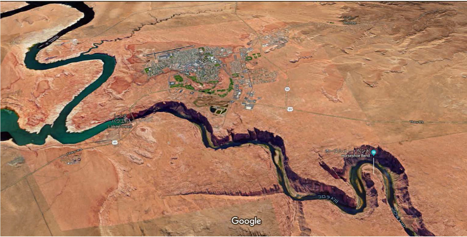 ホースシューベント、レイクパウエルの衛星写真