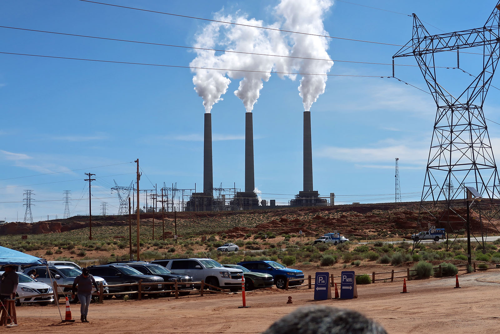 4WDでキャニオン入口へ 火力発電所の煙突が見える