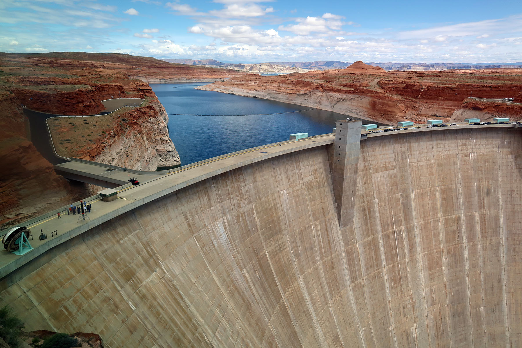 グレンキャニオンダム 高さ216m、幅475mで、1956年に建設が始まり1966年に完成した。